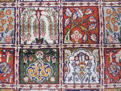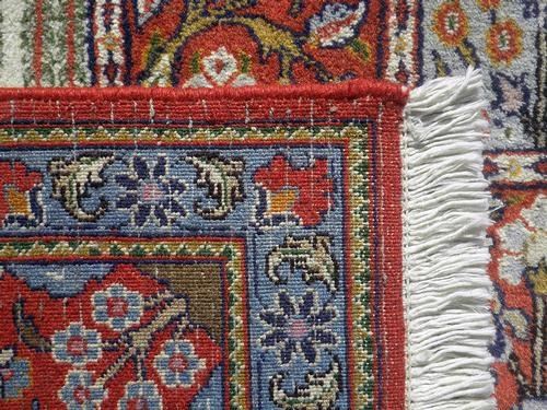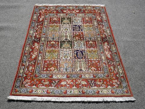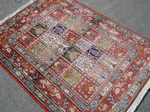 High Quality Superb Mood Rug 3.6 X 4.8 Fet. Made of fine quality lamb's wool pile on cotton foundation, all natural vegetable dye, the stunning rug incorporates a detailed pictorial tile design with a multicolored background by an intricately done floral multi layered border.