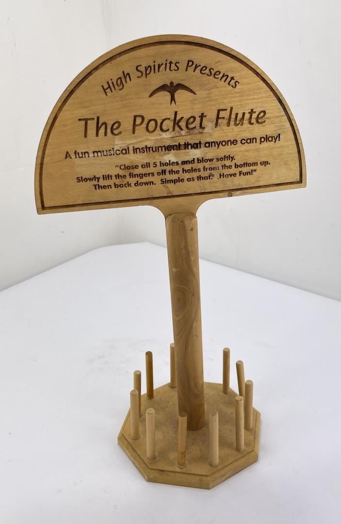 Counter top display for The Pocket Flute Model. 17 1/2" tall.