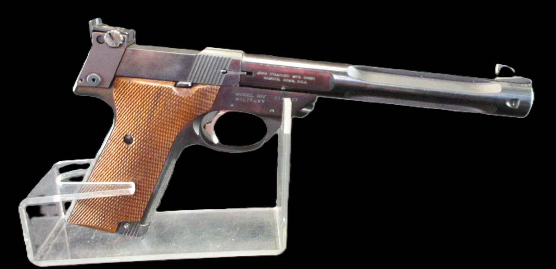 High Standard Model Supermatic Trophy Semi-Automatic Pistol- .22 LR- 7" Fluted Barrel- Model 107 Military- Adjustable Sights- Great Condition- #2141727