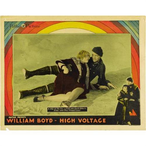 <B>High Voltage (Pathe', 1929).</B></I> Lobby Cards (4) (11" X 14"). Carole Lombard co-stars with William Boyd (of Hopalong Cassidy fame) in one of her first sound films. They play a couple who fall in love while stranded by a snowstorm - turns out they are both crooks. Also featured was Diane Ellis, who plays a girl on the way to her wedding. Ironically, Ellis would die less than a year later from a rare tropical disease while on her honeymoon. These cards have pinholes and corner creases, and two cards have one corner chip each. All four cards feature Boyd and three feature Lombard and Boyd together. Fine+. ****<BR><BR><b>Shipping:</b> Flat Material, Small (<a target="_blank" href="http://www.heritageauctions.com/common/shipping.php">view shipping information</a>)
