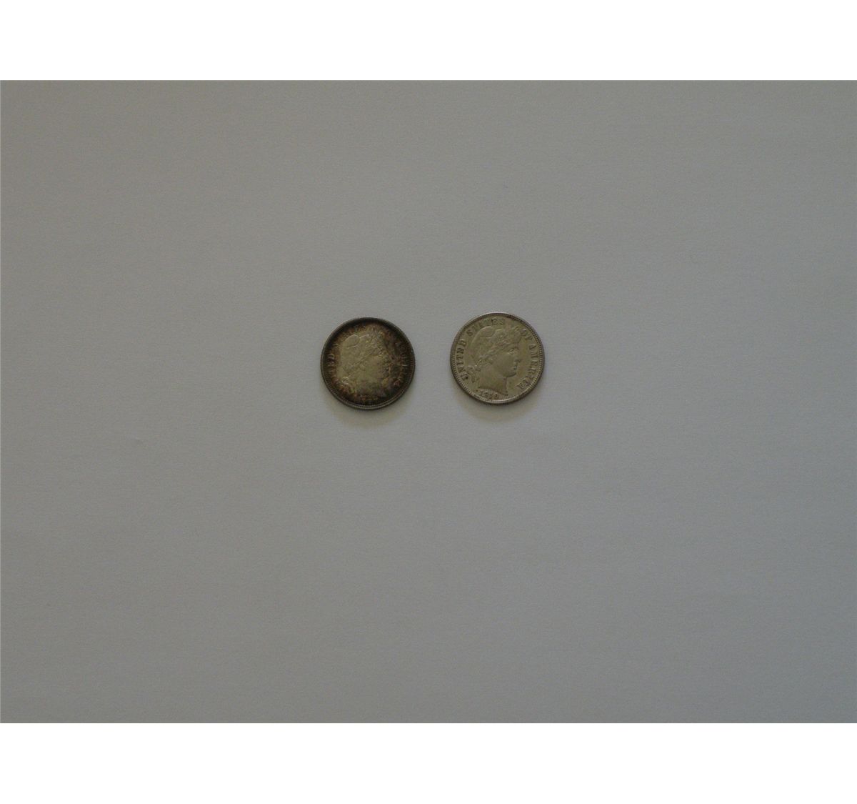 High grade Barber 10C duo: 1907-D, 1910-D. Both are AU with claims to a higher grade, and both are uncommon at this quality level. A total of two coins. Est$150