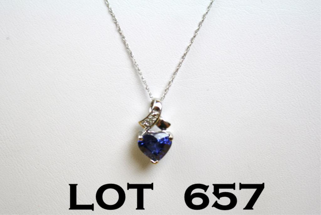 High quality 10 karat white gold ladies pendant fine set with a fine blue Ceylon type color sapphire weighing over 2.00 carats and side diamond. Retail $2,850.00 Estimate $800-$1,500 A fine item