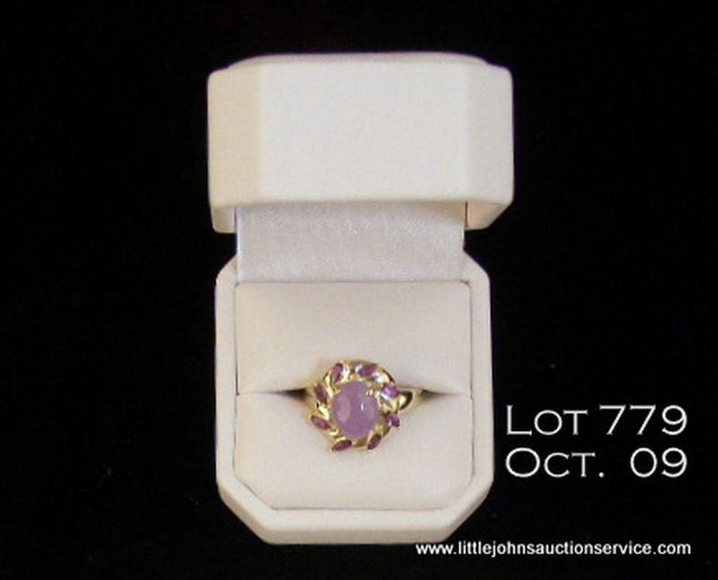 High quality 14 karat yellow gold ladies ring set with a fine oval lavender Jade and side MQ cut amethyst. Retail $1,250.00 Estimate $300-$500. Nice.