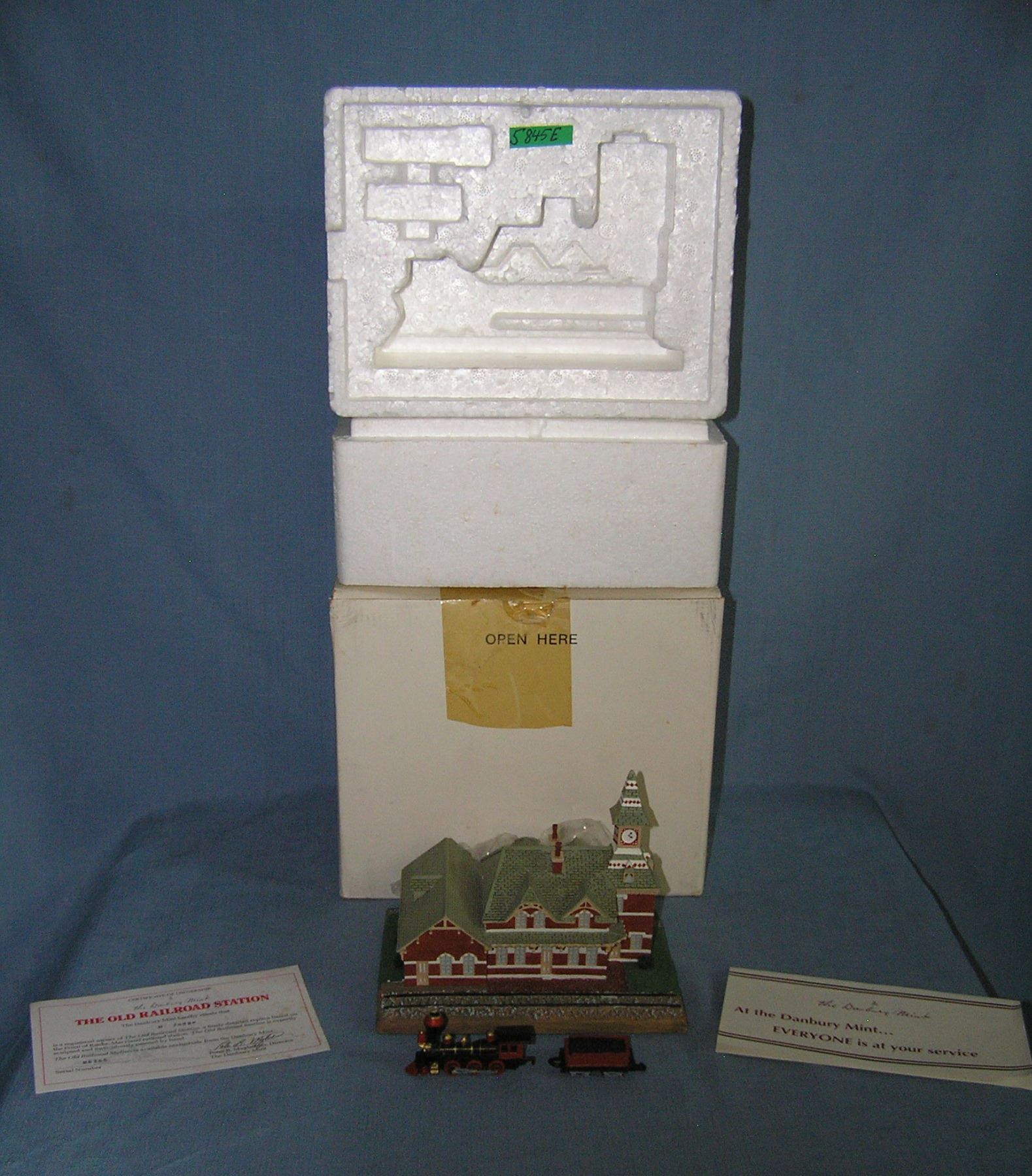 High quality Old railroad station heavily detailed replica model in original box est. value $100.00-$125.00