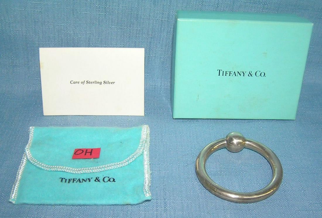 High quality Tiffany and Co. sterling silver rattle with original bag, box and silver care instruction card est. value $175.00-$225.00