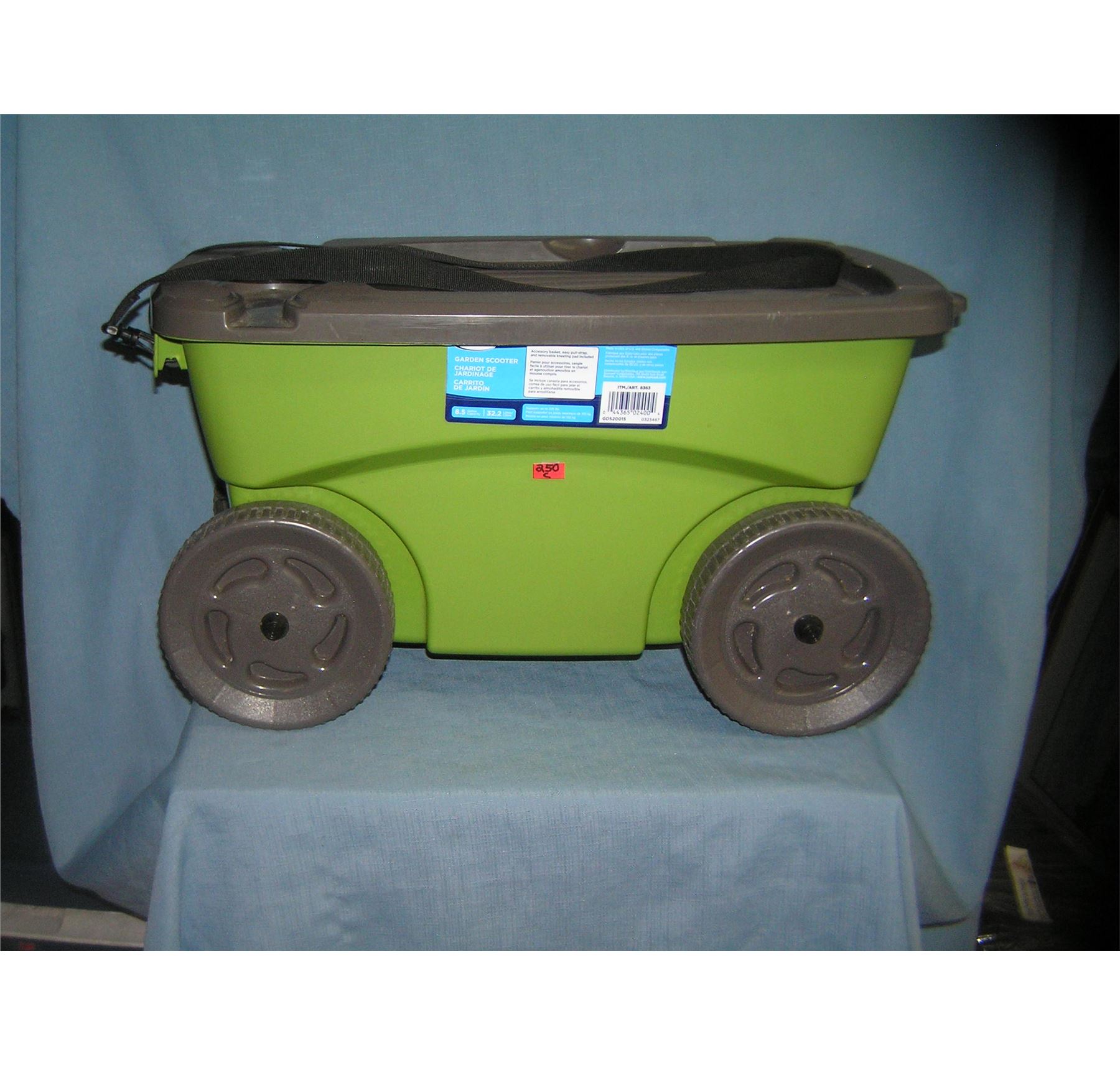 High quality garden scooter great garden tool carry all bench, wheeled cart and storage combo by Suncart company like new condition est. value $50.00-$60.00