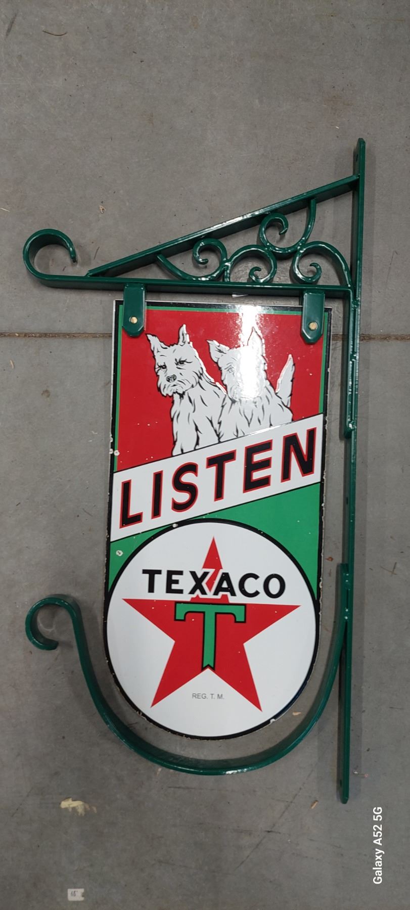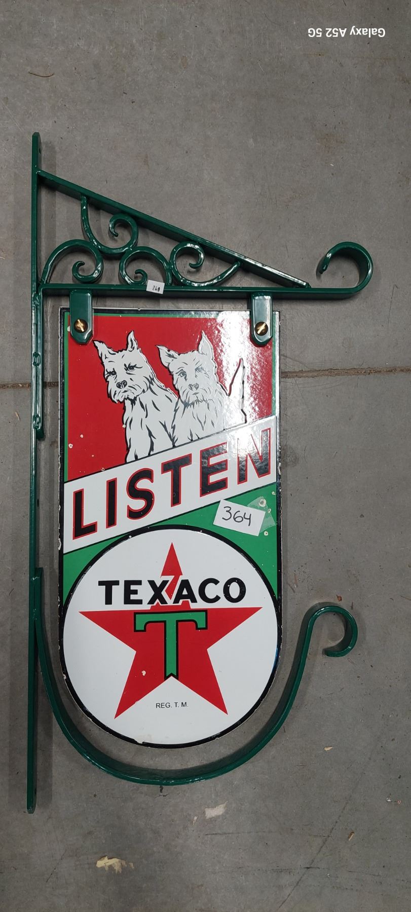 High quality reproduction Texaco double sided porcelain hanging sign with bracket, 13"x27"