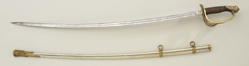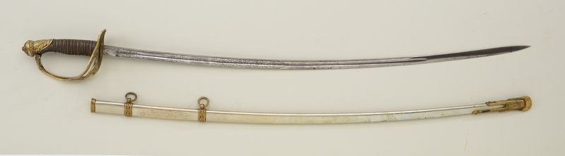 Higher Grade variation of an 1872 U.S. Cavalry Officer’s sword with original scabbard inscribed “Presented to Major Charles G. Todd by the Members of Co. C 201st Regt. N.Y.V.” (New York Volunteers); agentmarked “Ridabock and Co., New York” and “Made in France”; very good plus to near fine condition overall. The New York Volunteers served with Teddy Roosevelt in the Spanish-American War and this officer and his unit should be further researched. Est.: $750-$1,500.