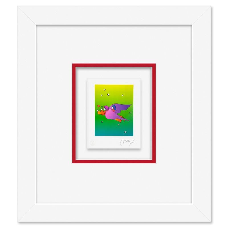 "Highest Mountain" is a limited edition lithograph on paper by Peter Max, numbered and hand signed by the artist. This piece comes framed. Includes Certificate of Authenticity from Peter Max Studios. Measures approx. 19" x 16.5" (frame), 9" x 6.5" (image).