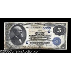 <TABLE cellSpacing=0 cellPadding=0 width="100%" bgColor=#000000 border=0><TBODY> <TR><TD width="100%"><TABLE cellSpacing=1 cellPadding=3 width="100%" border=0><TBODY><TR><TD width="100%" bgColor=#79735c><FONT face=arial color=#ffffff size=3><B>Description</B> </FONT></TD></TR><TR><TD width="100%" bgColor=#ffffff><FONT face=arial size=2><B>Highland, NY</B></I> - $5 1882 Value Back Fr. 574 <B>The First NB </B></I>Ch. #(E)5336<BR>An otherwise <B>Fine</B></I> note with stains present, especially near the lower face margin. This was the only bank to issue from this Ulster County locale. Kelly's reference lists three known large size notes. In 1935 only $1,160 remained unredeemed of its large issue. (600-1,000 ) </FONT></TD></TR></TBODY></TABLE></TD></TR></TBODY></TABLE><BR><TABLE cellSpacing=0 cellPadding=0 width="100%" bgColor=#000000 border=0><TBODY><TR> Important notice: Heritage usually auctions material at the rate of 200-250 lots per hour. On some occasions eBay Live bid software or the Internet may not be able to keep up with the pace of the auction. We recommend placing a realistic absentee bid now as insurance to avoid disappointment. Occasionally the auctioneer may eliminate or reject an eBay Live bid, and the auctioneer may also reopen a lot after the close of the eBay live bidding (usually because we missed an audience bid), and may reject your bid even if it shows you as the winning bidder. By bidding via eBay Live, you agree that Heritage may award the lot to another bidder at its sole discretion under the circumstances described above or any other reasonable circumstances. Also please note that all Heritage lots purchased through eBay Live carry a 20% Buyer's Premium. Please make sure you read the Terms and Conditions before you bid.</TR></TBODY></TABLE>