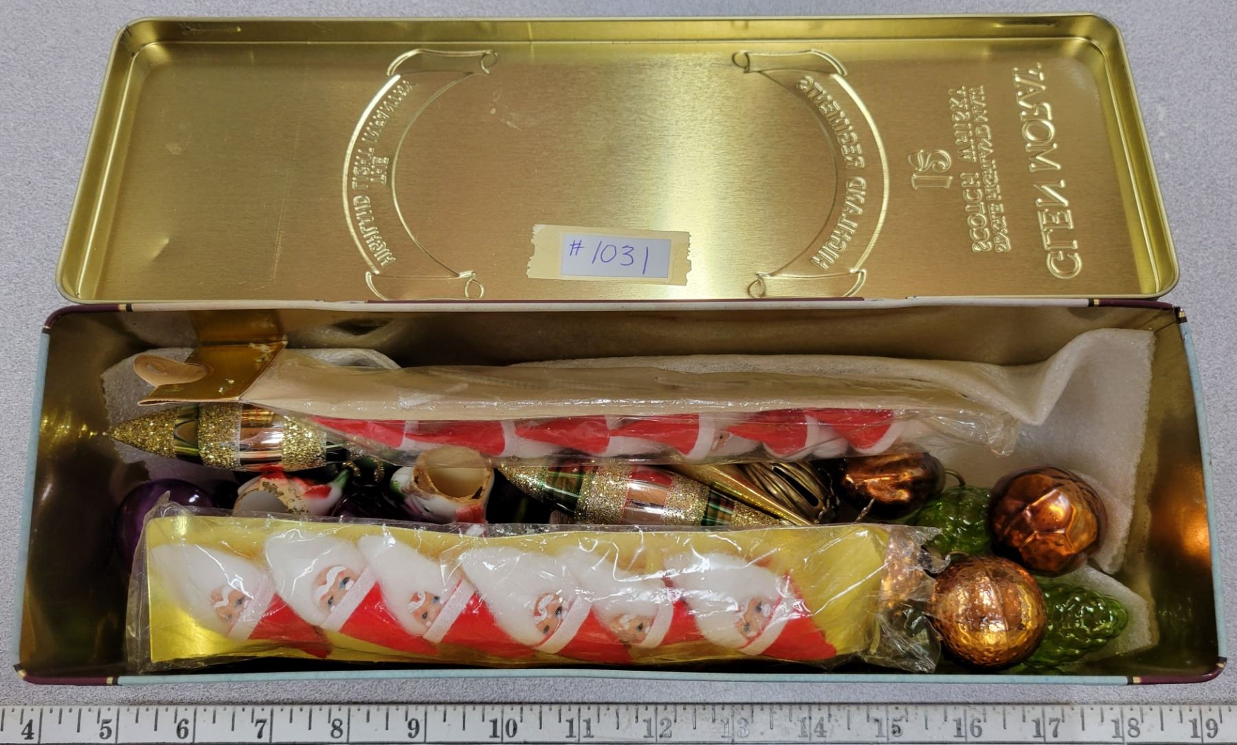 Highland Regiment tin with assorted mini-Christmas ornaments