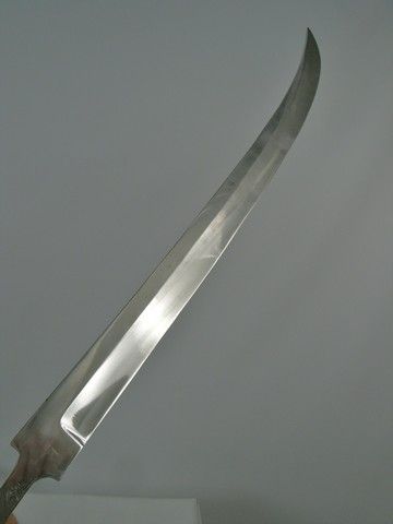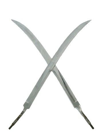 From the hit sequel "Highlander Endgame" (2000), these are the iconic hero double sword blades used by Jacob Kell (Bruce Payne) during his "beheadings". His double cross blade motion when beheading people has become a popular gesture of anger or disgust and is used all the time in TV shows and movies (as well as real life!). The matching extremely dramatic blades are made of high polished aluminum, with a "stunt" edging (dulled for safety). They come with an official Letter of Authenticity from David-Panzer Productions, and signed by producer Peter S. Davis. The LOA is framed. (Blades are 27"). Please note that these are the hero used blades which are the main feature, but do not include the small handles.