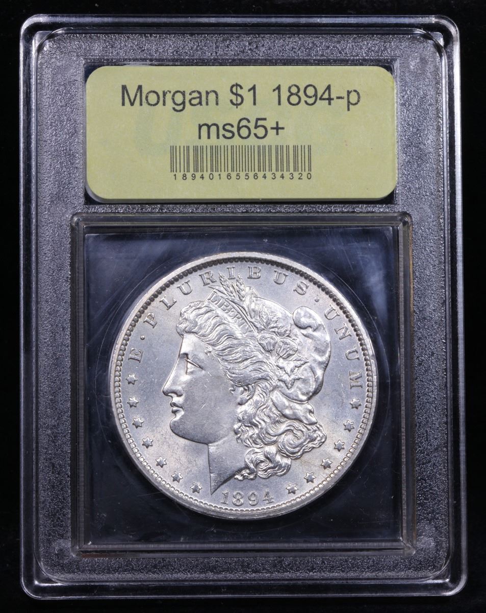 ***Auction Highlight*** 1894-p Morgan Dollar $1 Graded GEM+ Unc By USCG. Since no 1895 business strikes have been confirmed to exist, the 1894 becomes the key to a Philadelphia Mint collection of Morgan dollars. The commercial mintage is second-lowest behind the 1893-S, and most examples are in circulated grades. A supermajority of Uncirculated pieces are found in MS61 to MS64 grades. Gems are undeniably scarce relative to demand, and rarer than Population data suggests, given the number of resubmissions over the past third-century. The present lustrous Gem Plus, therefore, is an important opportunity to acquire a high-grade representative of this well-known rarity. The strike is good, the fields are smooth, and the cheek displays minimal indications of post-strike contact. Full Brilliance on both the Obverse and Reverse. Impeccable. I am including a picture of a PCGS Graded ms65+ Example, Ours is Vaslt Superior in my opinion, you should look closely. I think you will agree. The last ms65+ sold at auction for $33,600. The last ms66 realized $74,750. This coin is Clearly among the finest known examples, and I would say it is Tied for 4th Finest known.' A Corey's Pick, Bid to Win, Don't let it get Away, you might not find its equal Coin. I give this coin my highest recommendation