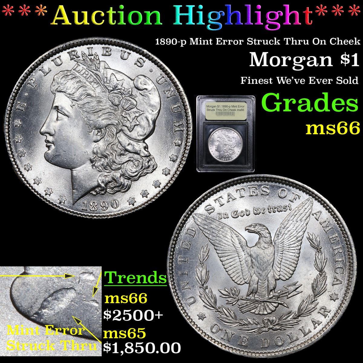 *Auction Highlight* 1890-p Mint Error Struck Thru On Cheek Finest We've Ever Sold . Morgan Dollar $1 Graded GEM+ Unc By USCG. A Corey's Pick, Bid to Win, Don't let it get Away, you might not find its equal Coin. I give this coin my highest recommendation