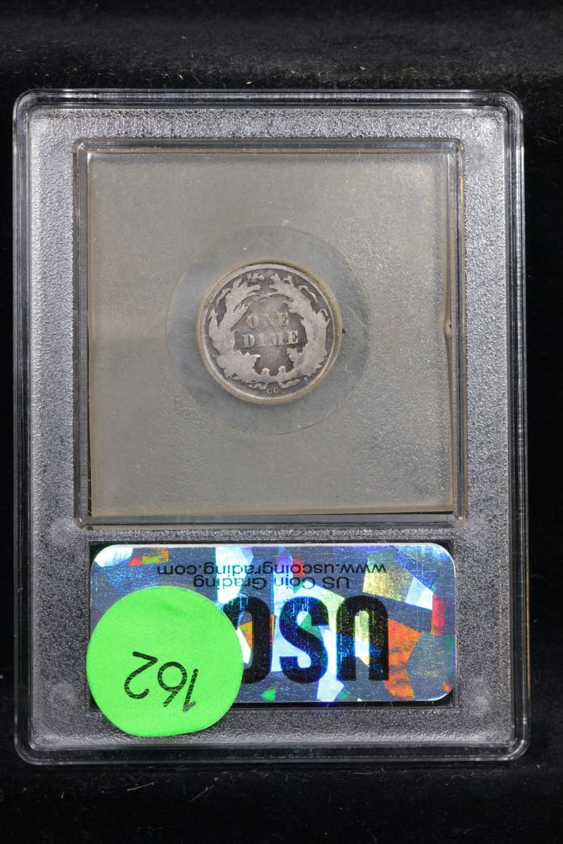 We DO NOT guarantee coin grades on any of our lots. Please study photos carefully and Video during the auction as well as asking questions before bidding. We may be reached at 856-685-9848 prior to the auction M-F 9am-5PM EST.