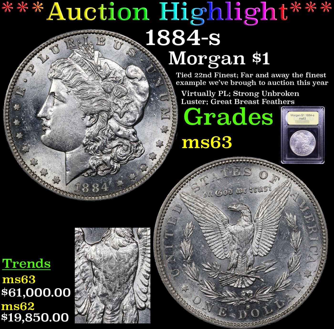 ***Auction Highlight*** 1884-s Morgan Dollar $1 Graded Select Unc By USCG. HIGHLIGHT OF THE ENTIRE AUCTION - Up for auction is a Superb Semi PL 1884-s. With a mintage of 3.2 million pieces, the 1884-S Morgan dollar does little to distinguish itself in lower circulated grades. This issue begins to command a premium in the XF and AU grades. There is a steeply diminished population in the AU grade ranges, with an accordingly steep increase in market values. At the Select Mint State grade level, the 1884-S is a borderline condition rarity, while Choice Mint State and finer pieces are extremely rare.