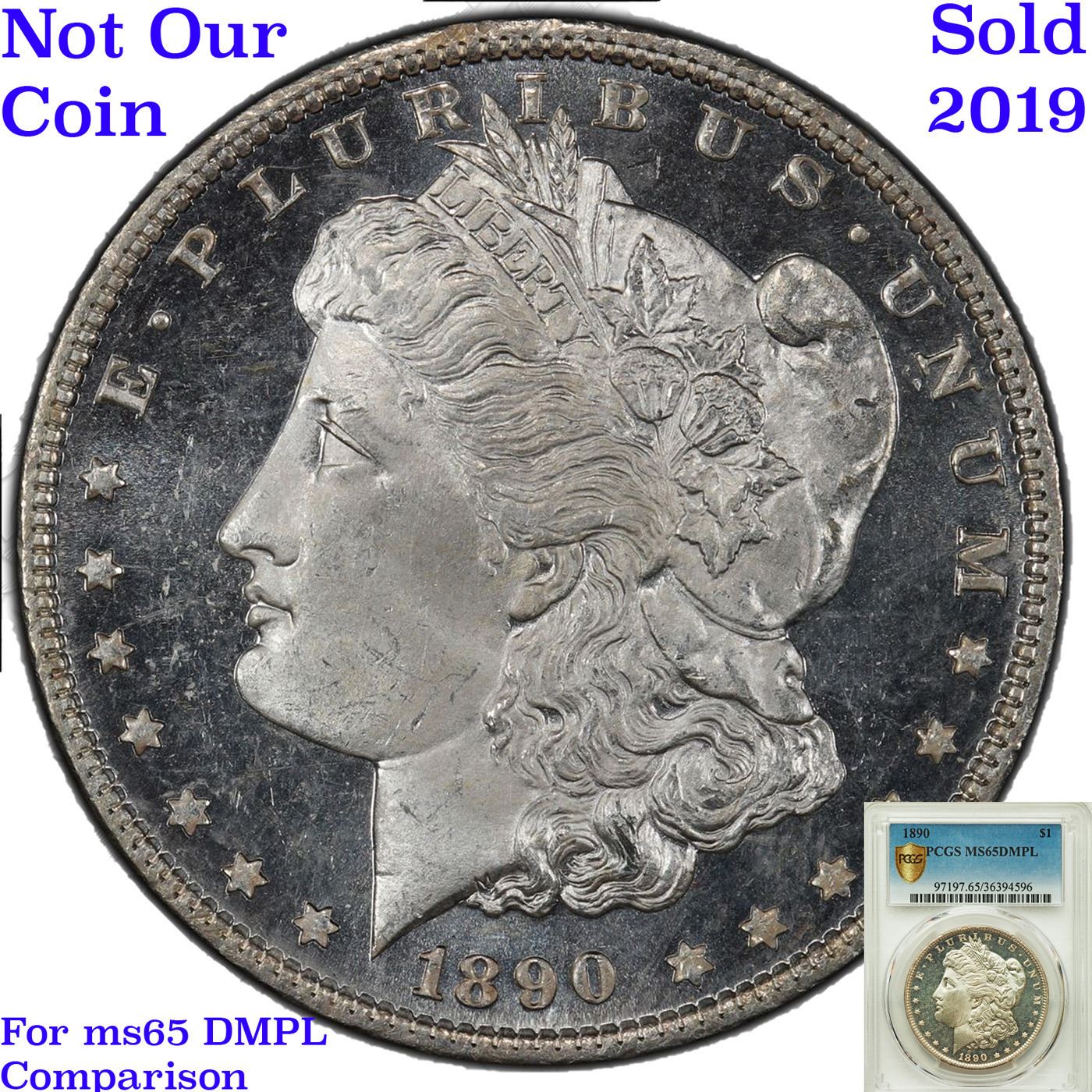 ***Auction Highlight*** 1890-p TOP POP! Morgan Dollar $1 Graded ms65+ dmpl By SEGS. HIGHLIGHT OF THE ENTIRE AUCTION - Up for Auction is a TOP POP, an ms65+ DMPL 1890-p Morgan Dollar WOW! This Philadelphia Mint Morgan dollar issue is readily available through Gem condition, but it is scarcely seen in any grade with Deep Mirror Proof like contrast. Coins of this quality are rare and unsurpassed. Richly frosted and fully struck relief elements stand out in stark contrast to the glassy fields. The cameo effect is highly appealing. Lone ms65+, behind about 5 examples grading ms65 dmpl. I have provided pictures of 2 of the ms65 dmpl examples for your comparison. A Corey's Pick, Bid to Win, Don't let it get Away, you might not find its equal Coin. I give this coin my highest recommendation