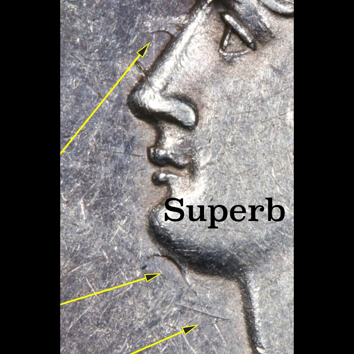 We DO NOT guarantee coin grades on any of our lots. Please study photos carefully and Video during the auction as well as asking questions before bidding. We may be reached at 856-685-9848 prior to the auction M-F 9am-5PM EST.