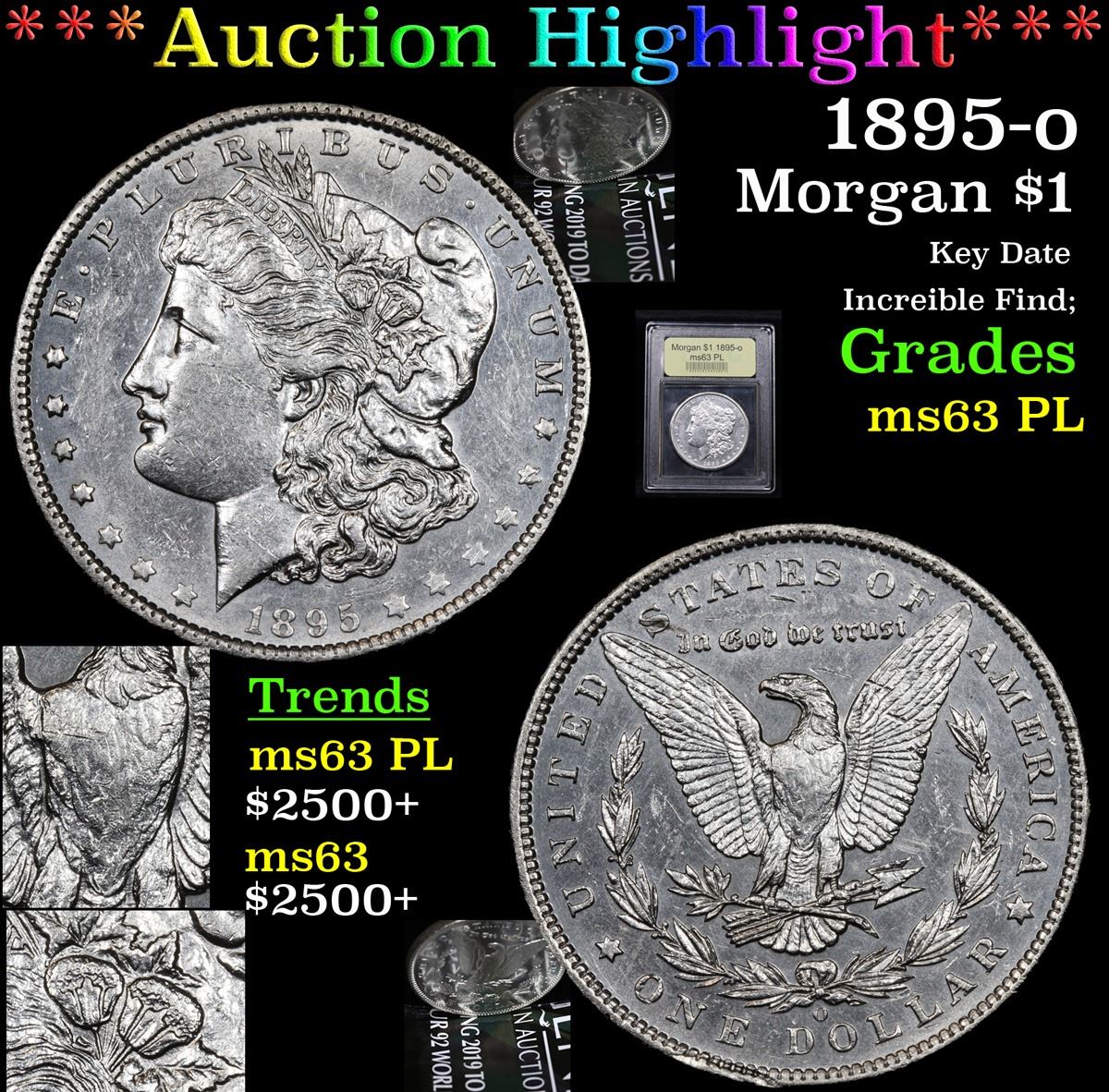 ***Auction Highlight*** 1895-o Key Date Incredible Find; Morgan Dollar $1 Graded Select Unc PL By USCG. PCGS Estimates only 11 examples survive in PL And DMPL Condition;. we've Never Brought to auction an unc PL 1895-o. an 1895-o in AU is Ultra Rare. And 1895-o In Unc Condition is a Numismatic Rarity. And an 1895-o In Unc Condition and PL is virtually Unknow. Please Look at the close up of the cotton bowls, the breast feathers, the big pictures of the coin, and the reflective pictures of the coin. Sandi and I Are incredibly Proud to Bring this to auction A Corey's Pick, Bid to Win, Don't let it get Away, you might not find its equal Coin. I give this coin my highest recommendation