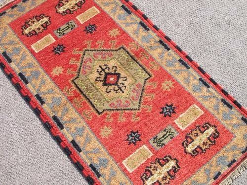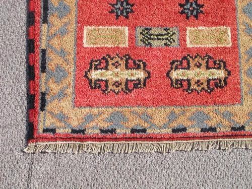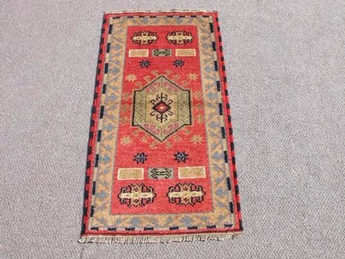 Rug: Hand Woven Kazak Design; Material: Fine quality wool pile, all natural vegetable dye; Size: 2.2 X 4.0 feet; Foundation: Cotton; Design: Kazak; Origin: Nepal;