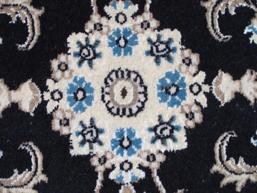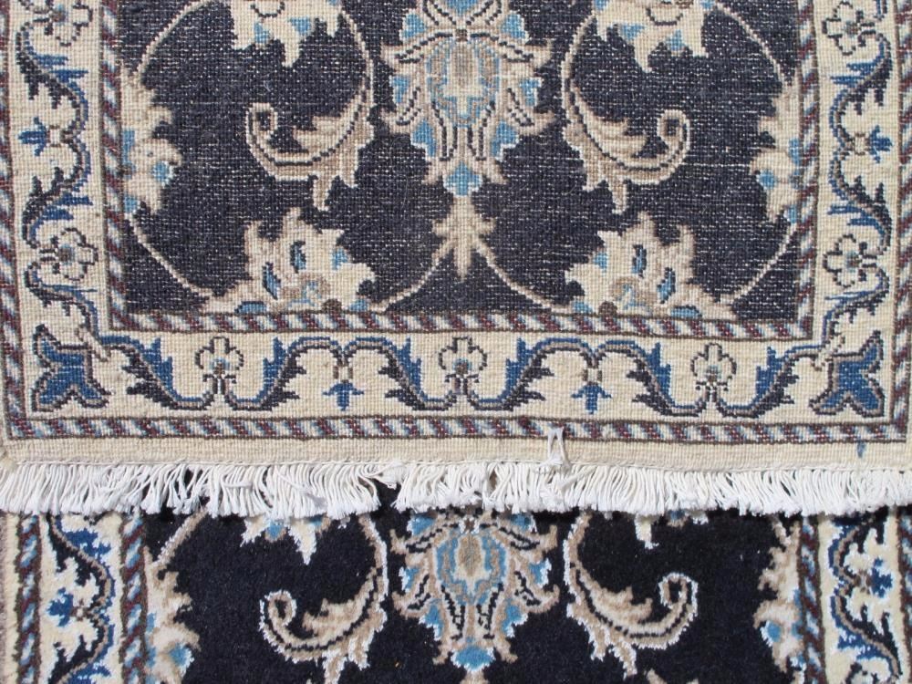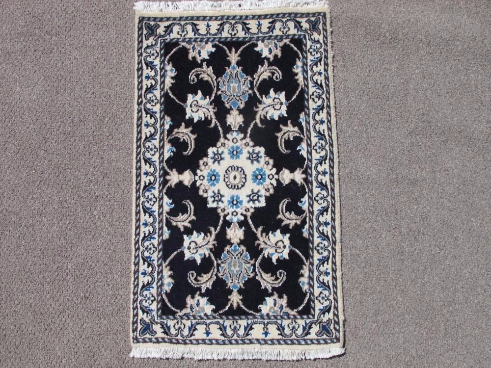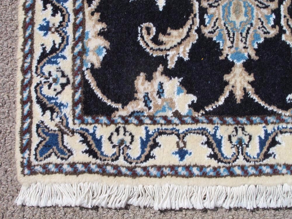 Rug: Handmade Wool and Part Silk Persian Nain; Material: Made of the finest baby lamb's wool and part pure silk pile, all natural vegetable dye ; Size: 3.0 x 1.10 feet; Foundation: Cotton; Design: Persian Nain; Origin: Iran
