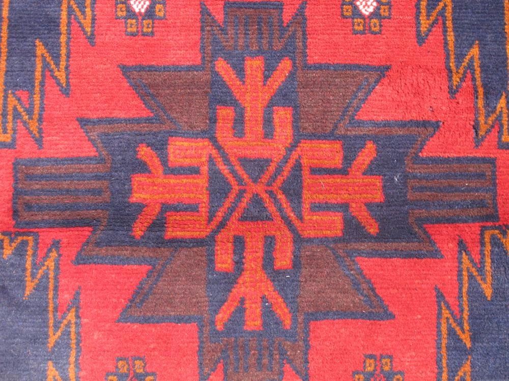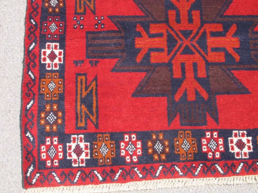 Rug: Handmade Semi Antique Wool on Wool Persian Balooch; Material: 100% Fine quality wool, all natural vegetable dye; Size: 6.0 x 4.0 feet; Foundation: Wool; Design: Balooch; Origin: Iran