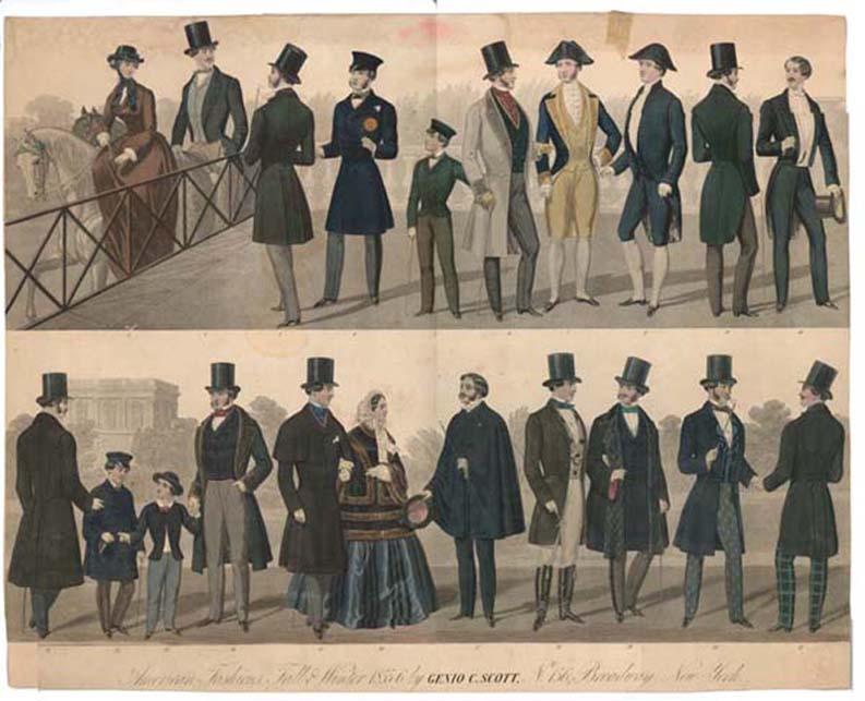 [Genio Scott].22 7/8” x 18 1/4” poster advertising “American Fashions Fall & Winter 1855-6 by Genio C. Scott, No 156 Broadway New York.” Wonderfully illustrated with twenty-one color drawings of the seasons’ fashions. Genio Columbus Scott began his career in the fashion periodical business in New York City, publishing Scott’s Report of Fashions and The Monitor of Fashion. He also owned a clothing store on Broadway called Fashions. However, his true love was fly fishing. He wrote Fishing in American Waters (1875), illustrating it with 170 of his own pencil sketches. Extremely Fine.