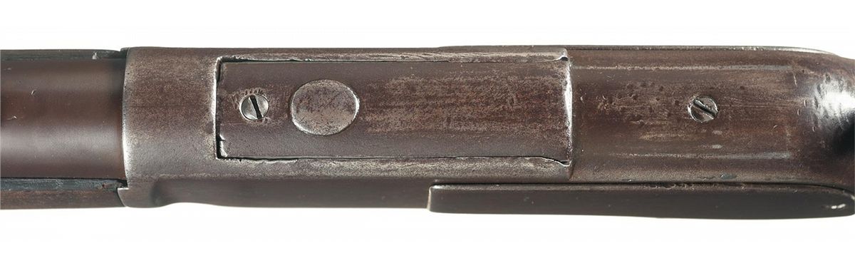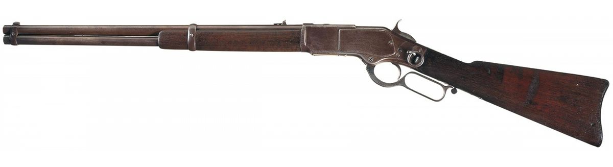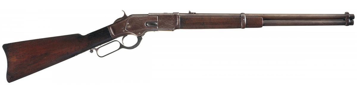 About good. The carbine is all original. The barrel, magazine, receiver, hammer, lever and buttplate have a dark untouched patina. The surfaces of the barrel and magazine are smooth and free from pitting and the barrel markings are crisp. The edges of the receiver that retain the dust cover are worn. The raised oval thumbprint on the dust cover is worn smooth. The side plate edges are worn and the side plates and sides of the receiver have scattered light pitting and handling marks. The model and serial number markings on the lower tang are light but legible. There is light pitting on the lever and the sides of the hammer. There is some light pitting on the buttplate. The walnut stock and forearm are good-very good and show light-moderate handling wear. Model 1873 Carbines were working guns that typically saw hard service on the frontier. Experts estimate that the survival rate for early production Model 1873 Winchesters is less than 10%. As James Gordon's survey published in "WINCHESTER NEW MODEL of 1873" indicates, the survival rate for First Model, First Variation Winchester 1873 Carbines is lower still. This is a one-time opportunity to add a rare First Model, First Variation, Model 1873 Saddle Ring Carbine to an advanced Winchester collection. This is a "Holy Grail" variation of Winchester Model 1873s, second only to the One of One Thousand!
