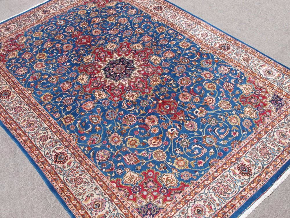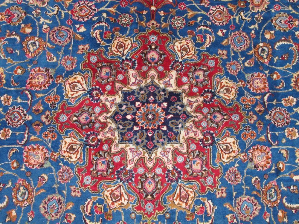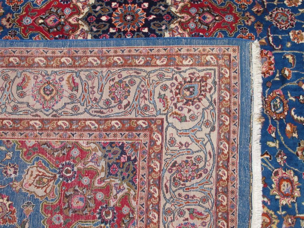 Rug: Handmade Semi Antique Persian Isfahan with Nice Medallion; Material: Made of the finest quality baby lamb's wool pile, all natural vegetable dye; Size: 13.3 x 9.7 feet; Foundation: Cotton; Design: Persian Isfahan; Origin: Iran
