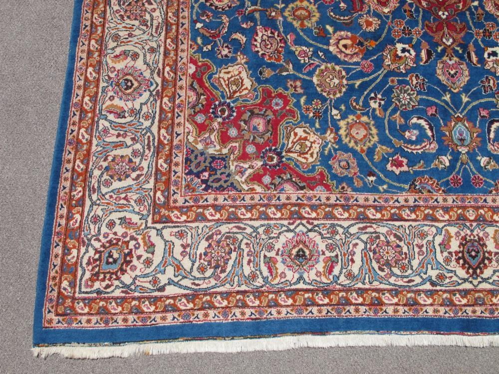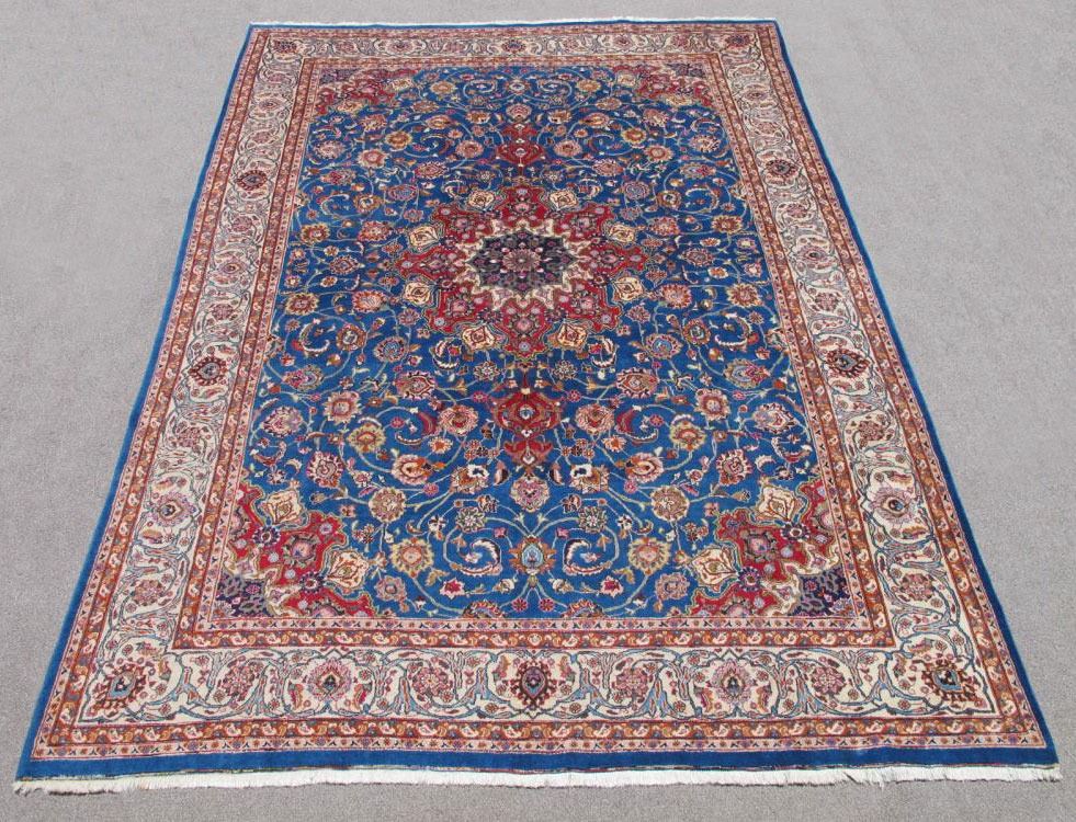 Rug: Handmade Semi Antique Persian Isfahan with Nice Medallion; Material: Made of the finest quality baby lamb's wool pile, all natural vegetable dye; Size: 13.3 x 9.7 feet; Foundation: Cotton; Design: Persian Isfahan; Origin: Iran