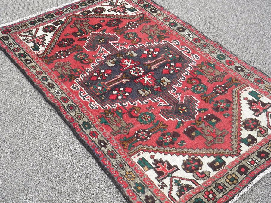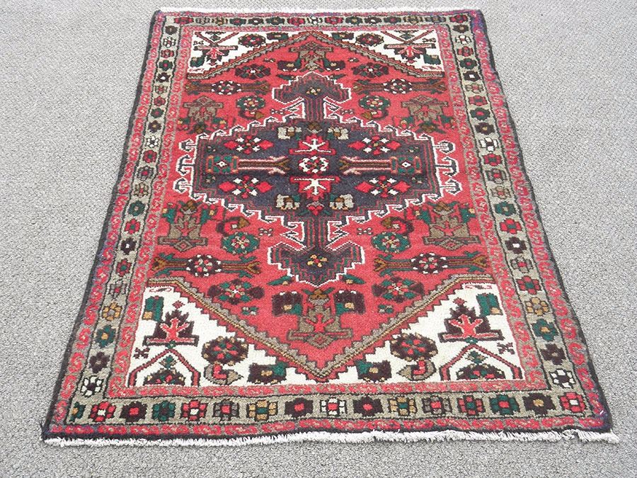 Highly Detailed Hand Woven Persian Hamadan. Size 5.1 X 3.2 feet, made of fine quality baby lamb's wool pile on cotton foundation, all natural vegetable dye, incorporating a combination of floral and tribal pattern on red and white background, with a large dual headed multi colored multi layered centerpiece medallion and nice tribal-floral trim. Great contrast in the variety of colors. Hand woven in Hamadan, Iran.