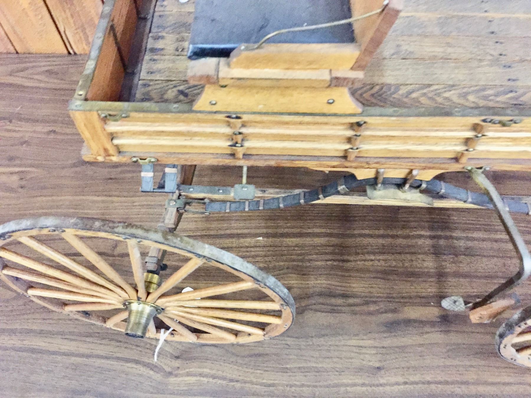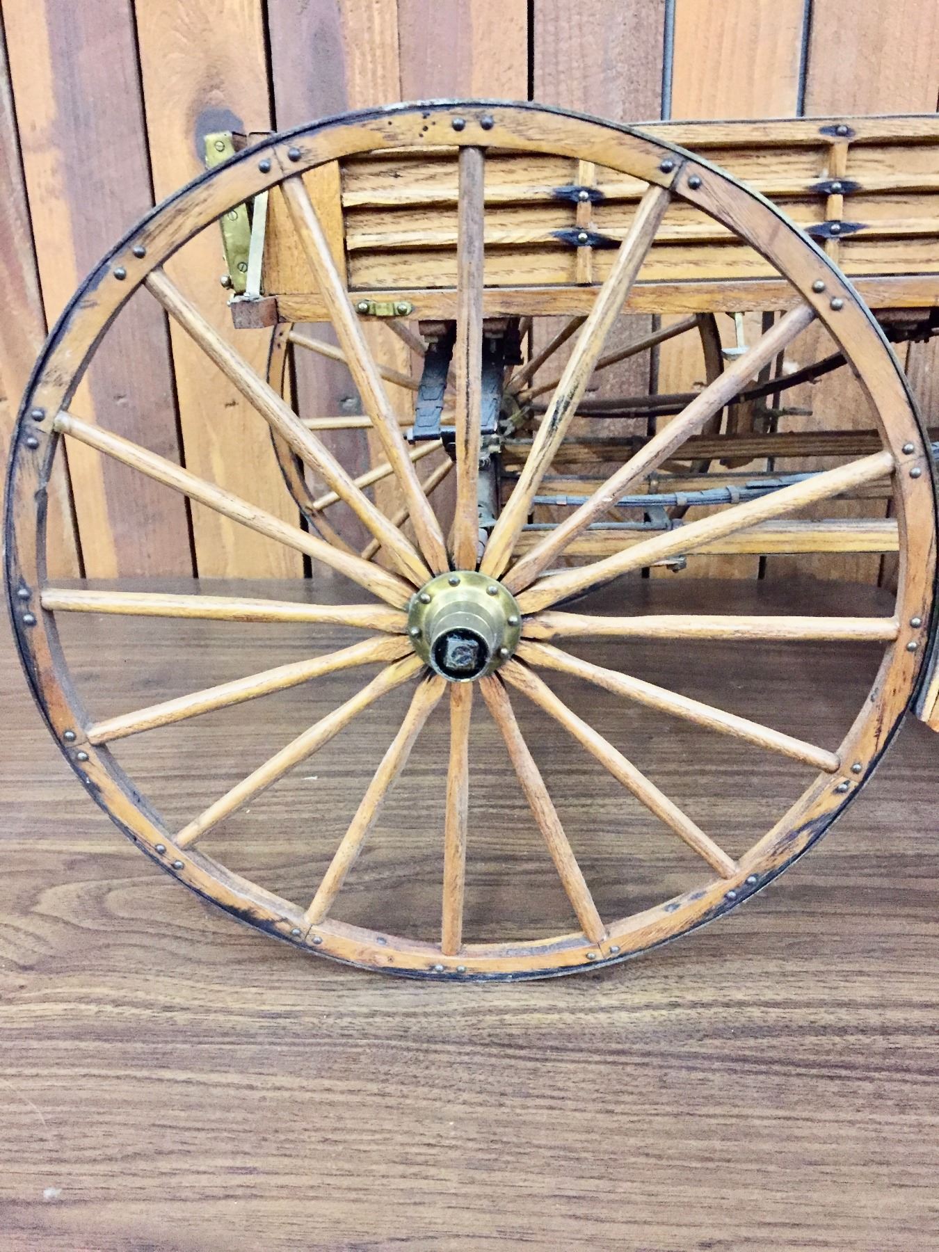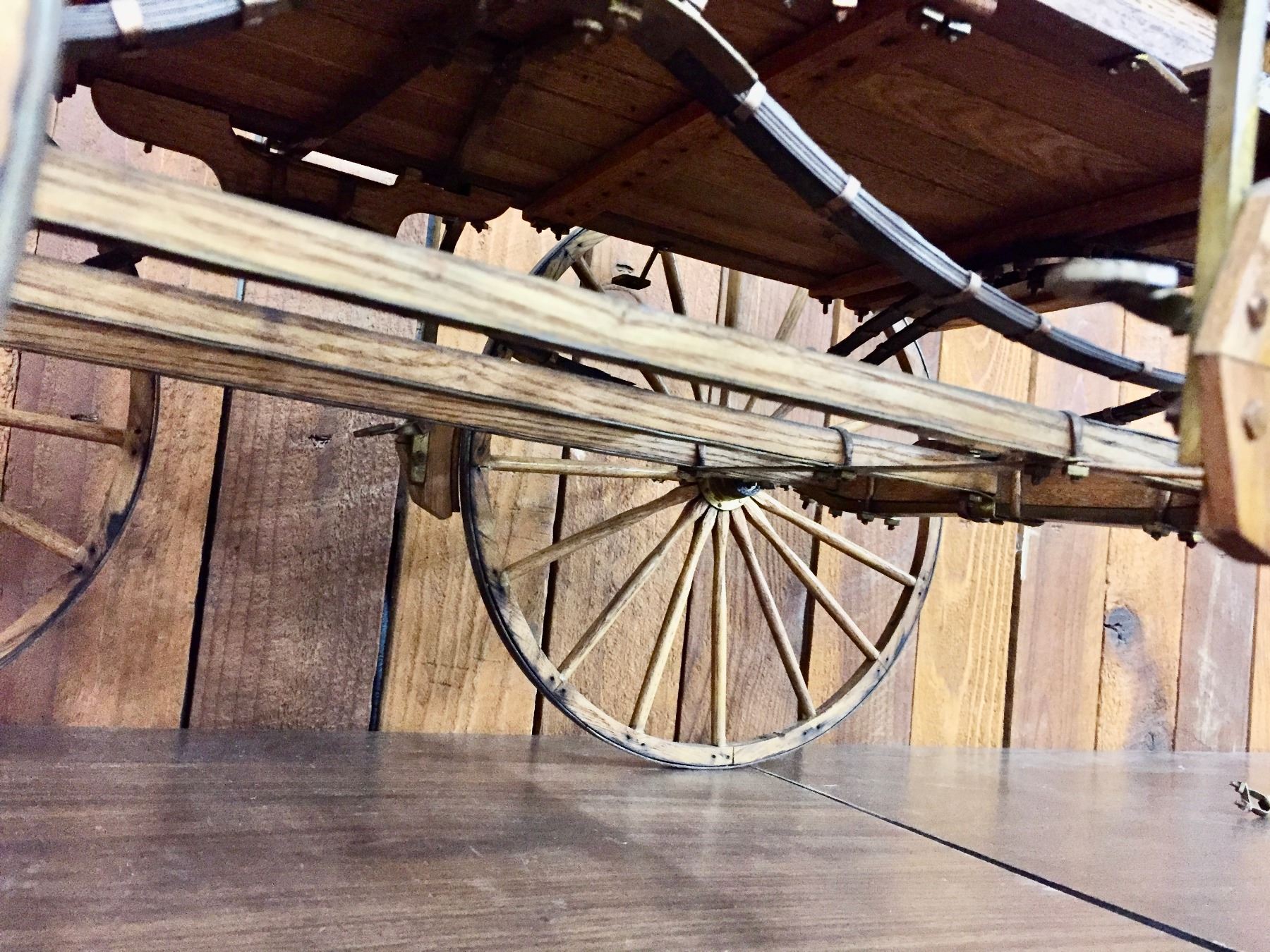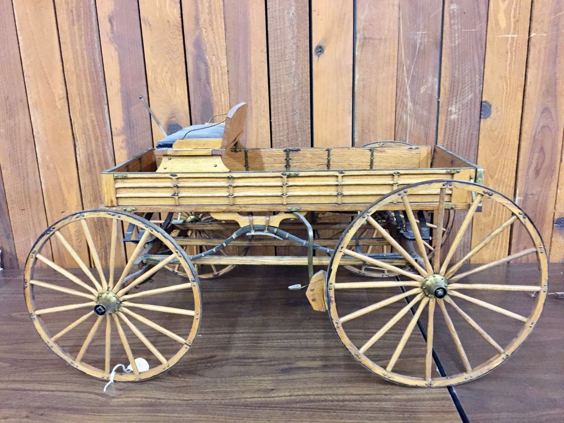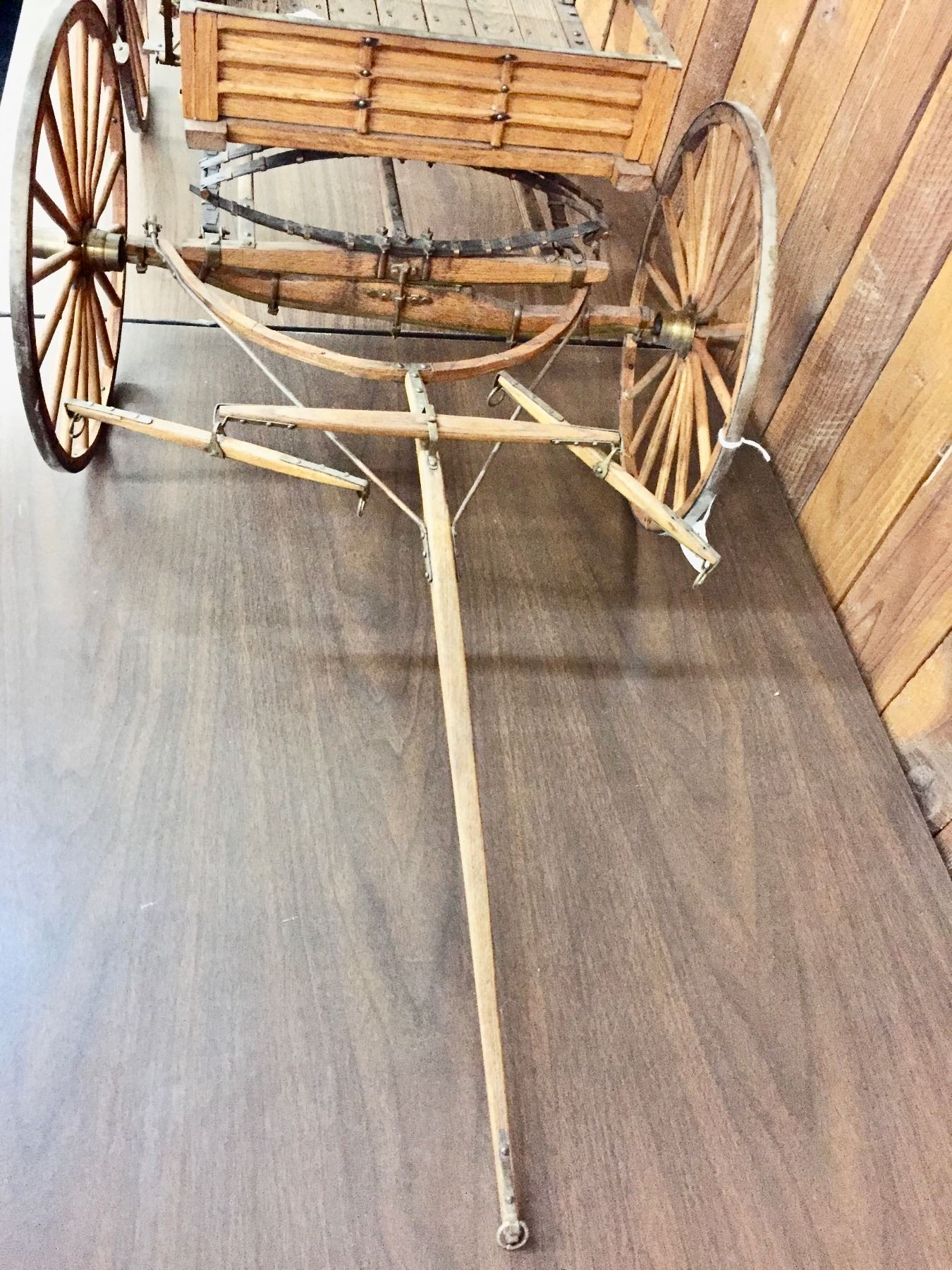 Description: For sale in this lot is this highly detailed wooden mini wagon created by the known artist, Ben Wagner. Maker: Ben Wagner, Montana.