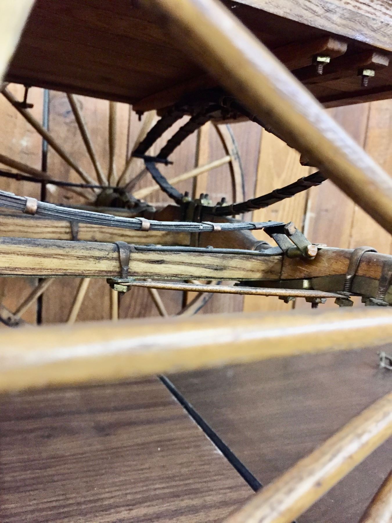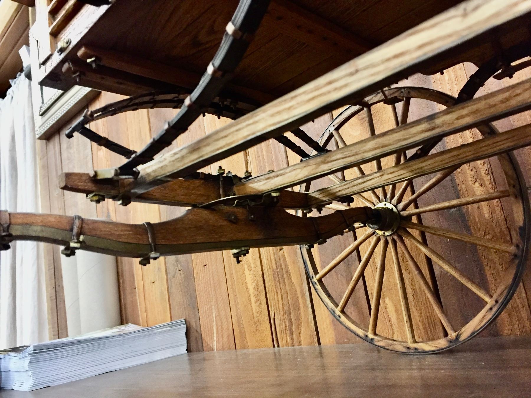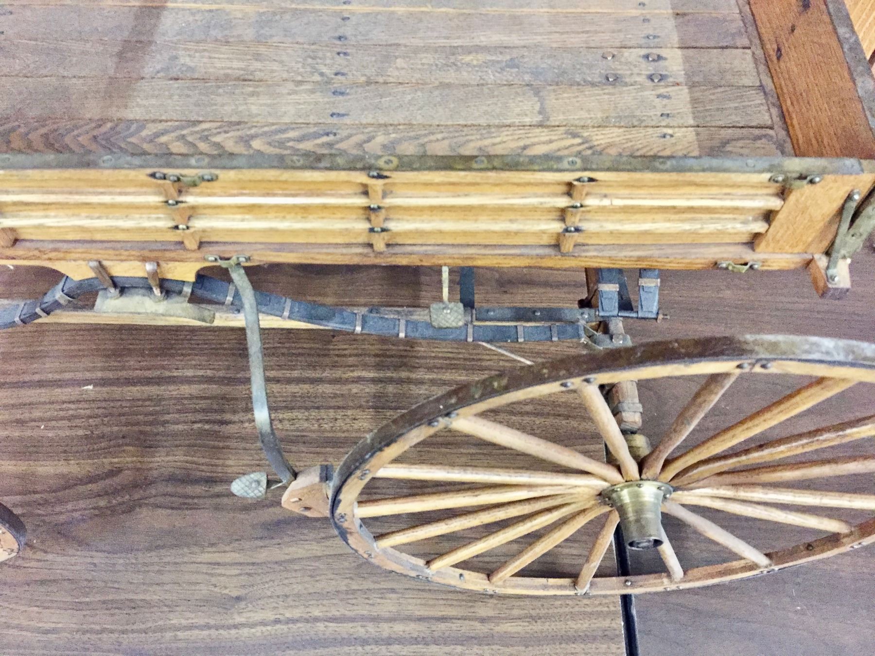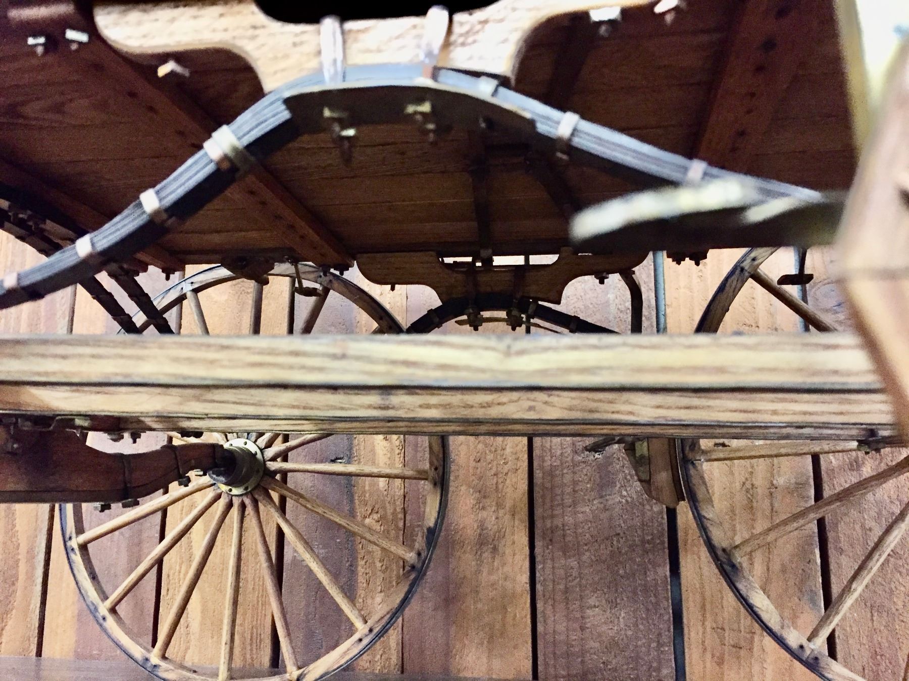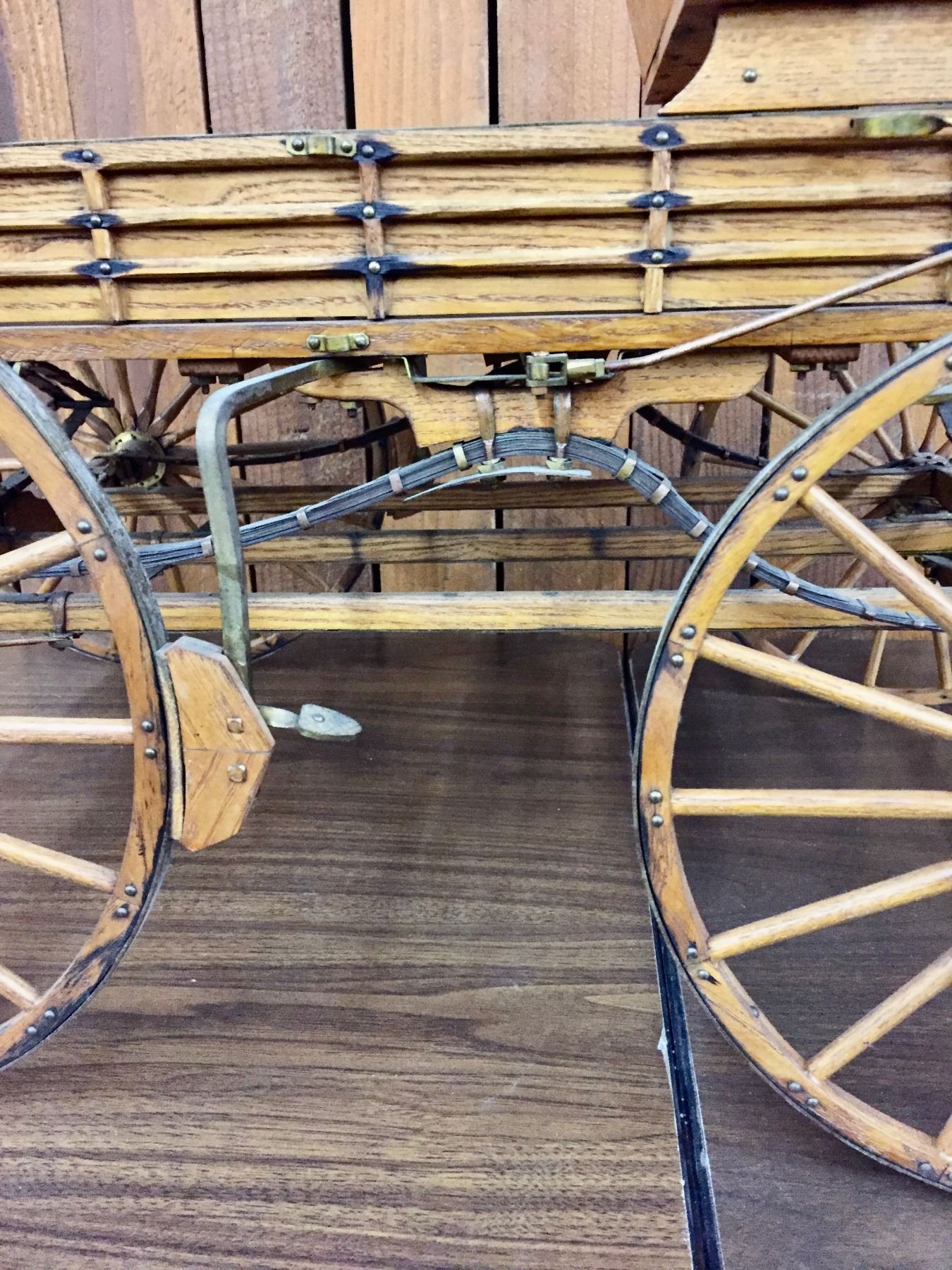 Description: For sale in this lot is this highly detailed wooden mini wagon created by the known artist, Ben Wagner. Maker: Ben Wagner, Montana.