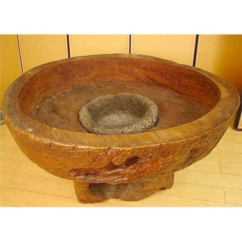 The people of Cheju Island have long had a distinctive culture that has given us art and antiques that are, like the island itself, simultaneously rough and beautiful. Treasured by collectors for their vigorous folksy character, antiquities of this quality from this sparsely populated island are rare. This all original and unrestored 19th Century piece is a grain grinder made of volcanic rock and burlwood. With glass placed across the top, it makes a striking table. A very collectible piece and a great investment for the wise collector. diameter 34 inches, height 17 inches, 86 x 43 cm. Excellent Condition.
