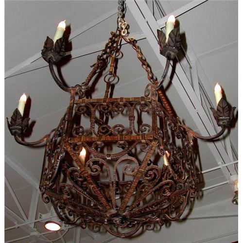 <tr><td>Title:Highly Scrolled French Iron 6 Light Chandelier</td></tr>