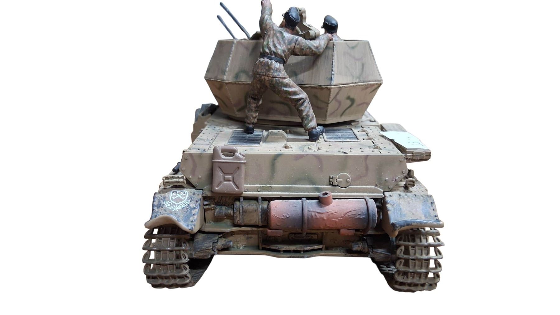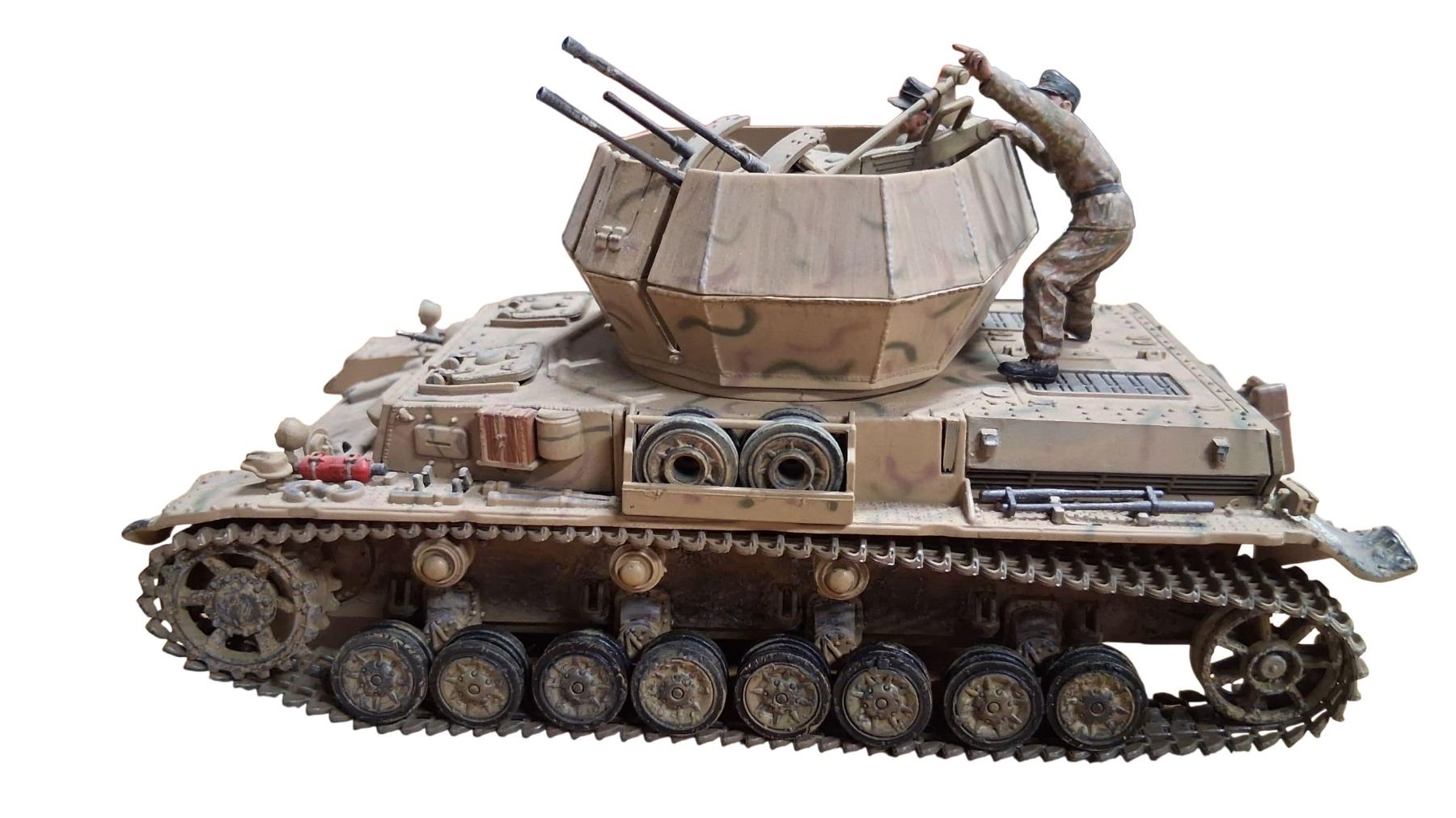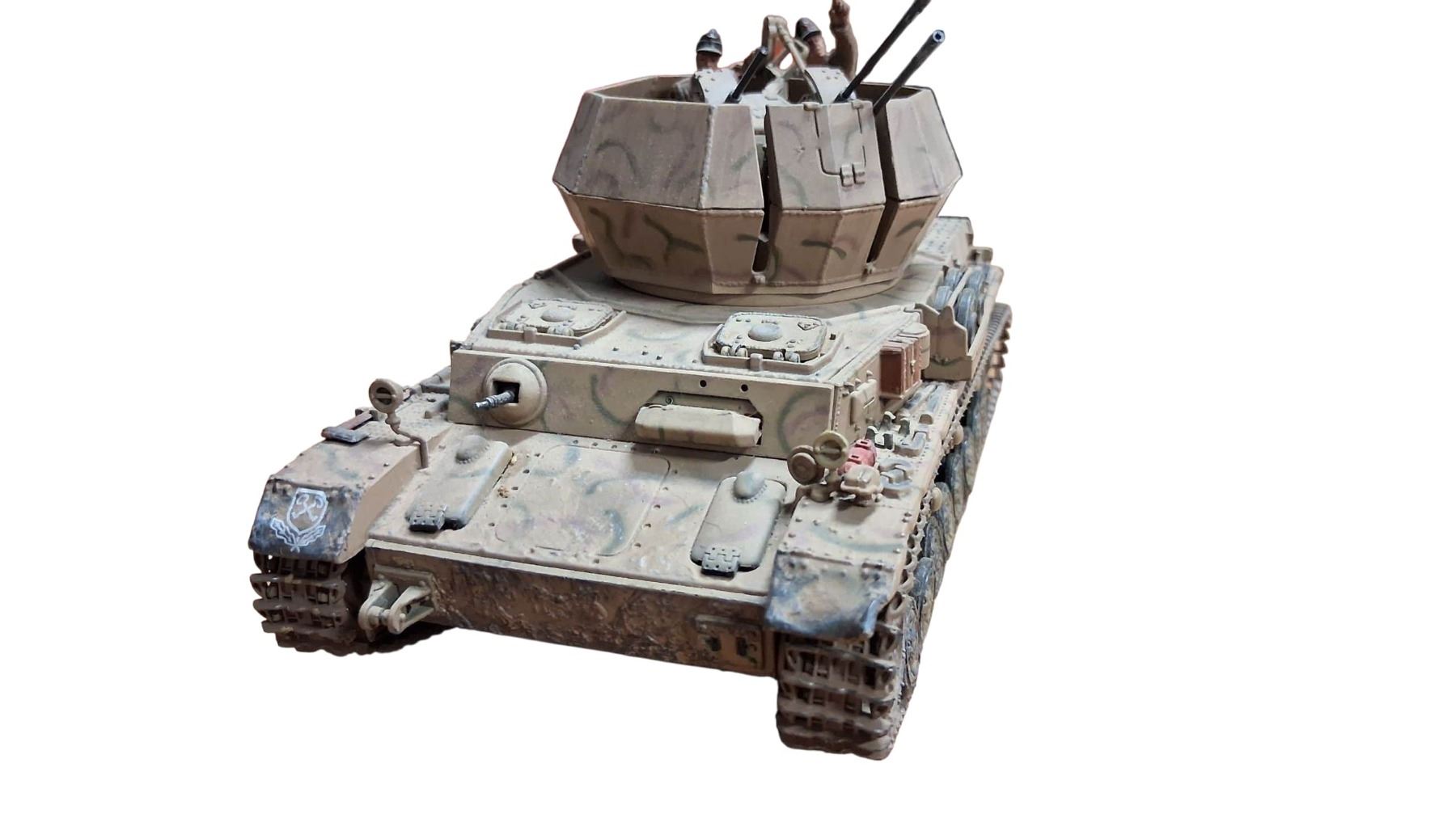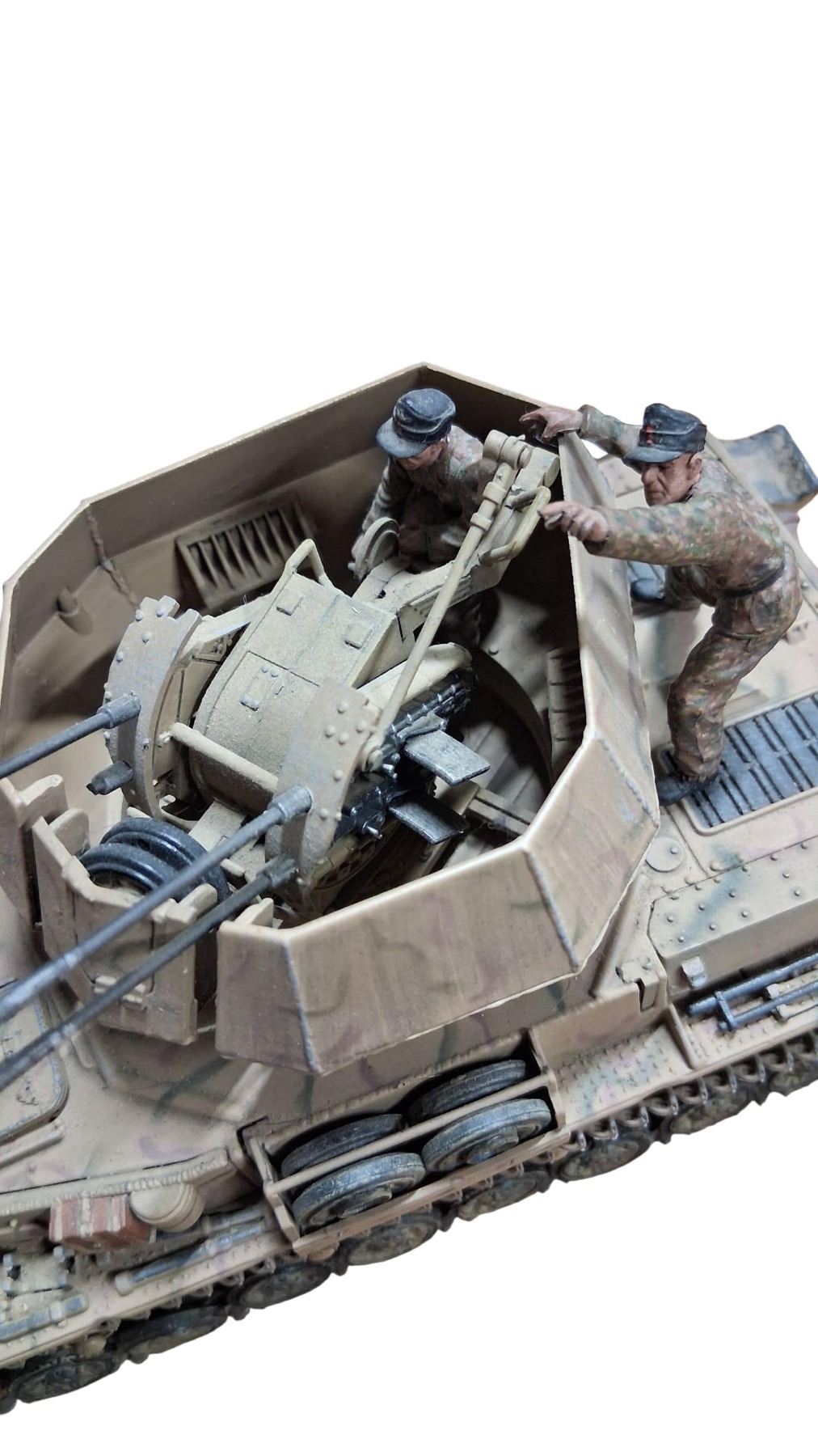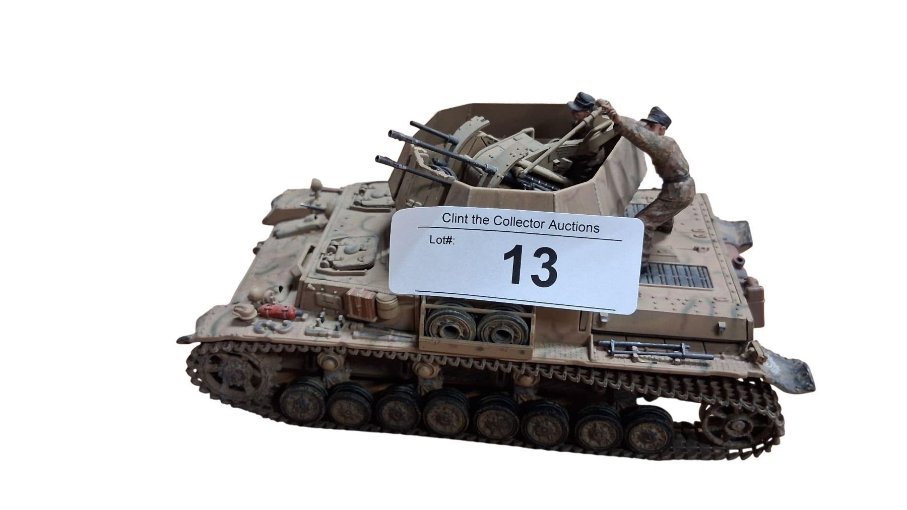 Highly detailed vintage German anti aircraft tank model with authentic figures 7" long