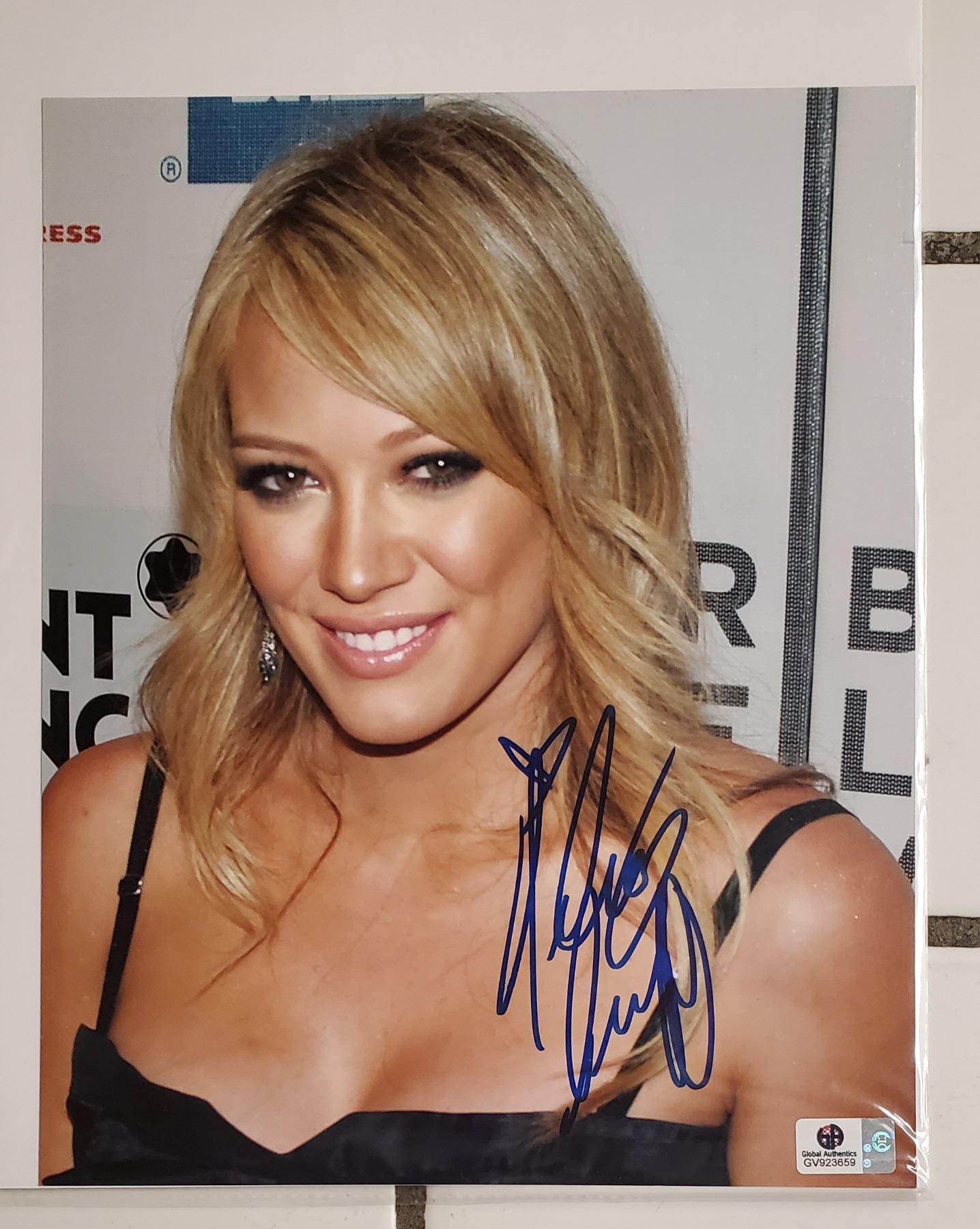 An 8” x 10” photograph signed by Hilary Duff. Global Authentics authenticated the autograph, providing a COA numbered GV 923659.