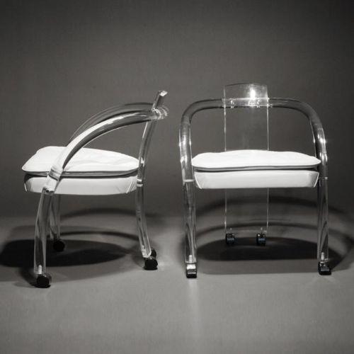 29h x 24w x 19d inches, lucite glass and new white leather, original vintage very good condition