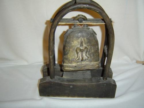 From the Hill Tribes of Thailand, a 10.5" X 8" hand crafted bronze Elephant Bell in a stand.