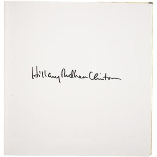 <B>Hillary Rodham Clinton: Signed </B></I><B><I>An Invitation to the White House: At Home with History</B></I></B></I> (New York: Simon and Schuster, 2000), first edition, 312 pages, heavily illustrated, beige binding with black-cloth spine and gold lettering, 4to (10.5” x 10.5”), dust jacket (in protective sleeve), signed on the front blank page <I>“Hillary Rodham Clinton”</B></I>. During her husband’s administration (1993-2001), former First Lady, senator and presidential candidate Hillary Clinton penned this colorful reminiscence of cultural life at the White House. The book is in very fine condition; the dust jacket is fine with minor scratches.<BR><BR><b>Shipping:</b> Books & Catalogs (<a target="_blank" href="http://www.heritageauctions.com/common/shipping.php">view shipping information</a>)