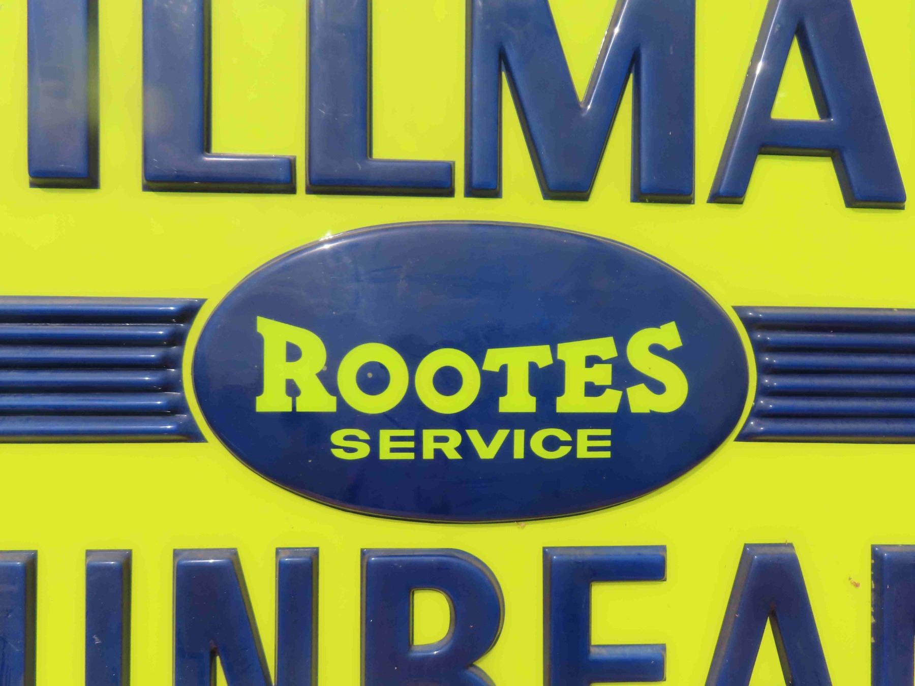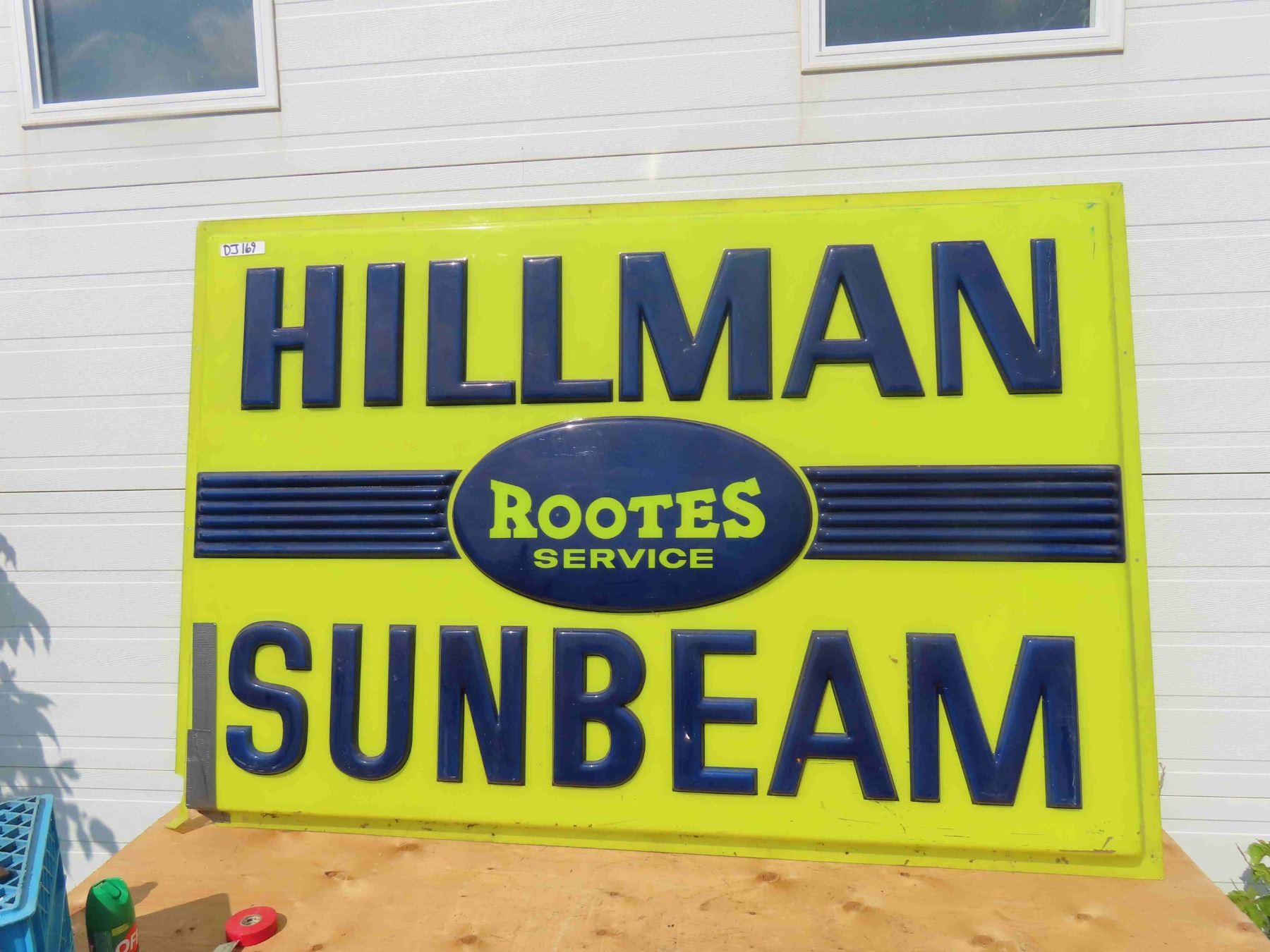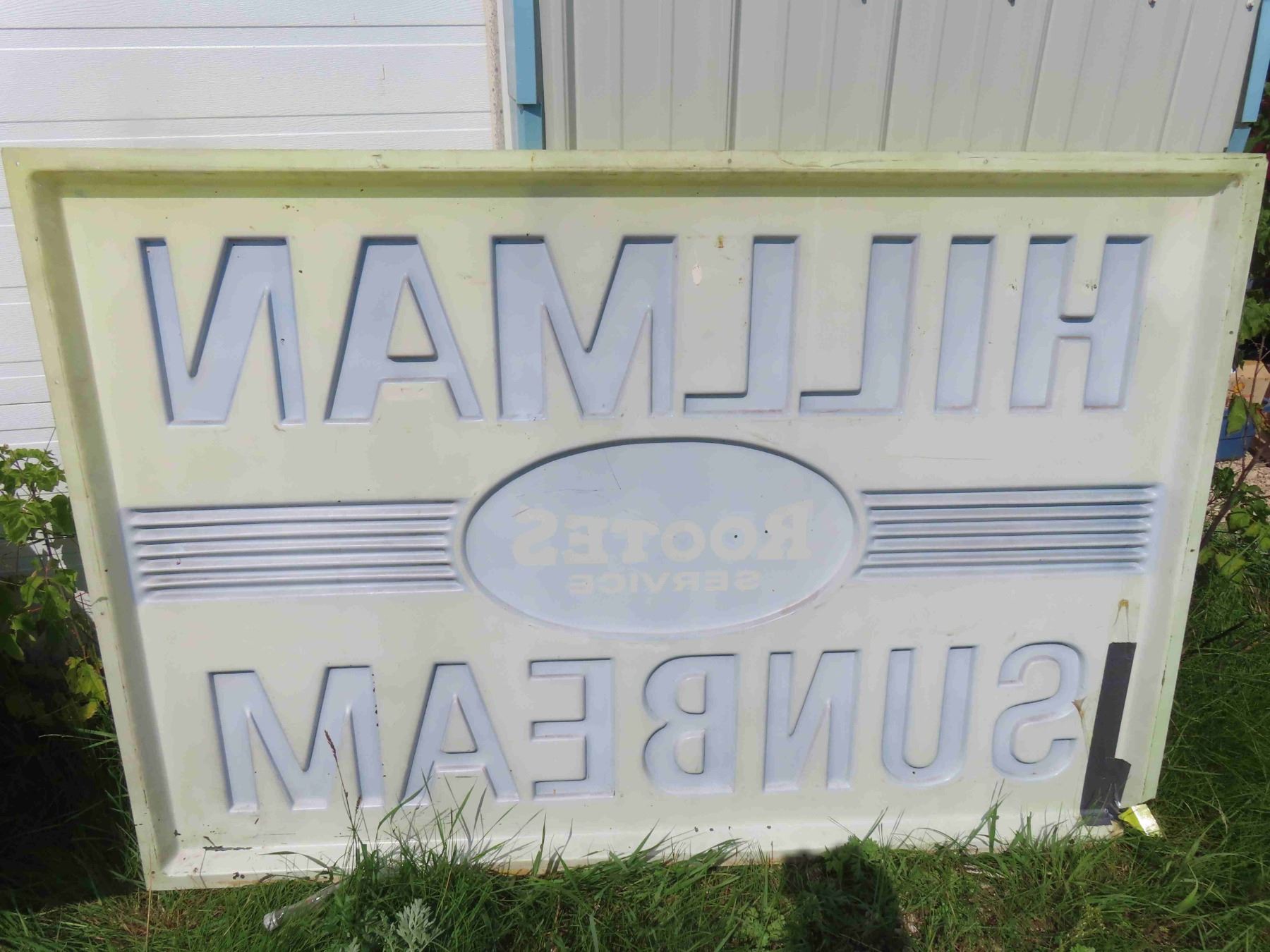 Hillman-Sunbeam Rootes Service Plastic Vacuum Formed Dealer Sign Face 67'' x 46'' - Damage to Right Lower Corner