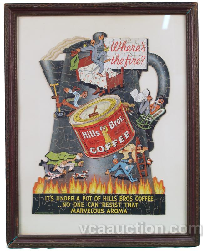 Hills Bros. Coffee Puzzle Advertisement "Where's The Fire" - Framed 15" x 20", puzzle size - 10" x 14".