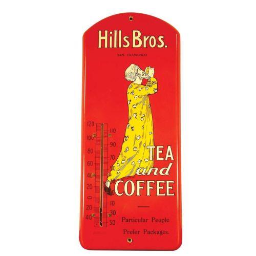 Hills Brothers Tea and Coffee, San Francisco. Porcelain thermometer, 1915 Beach Mfg., Coshocton, OH. Mint condition. 8 3/4 X 21 inches.