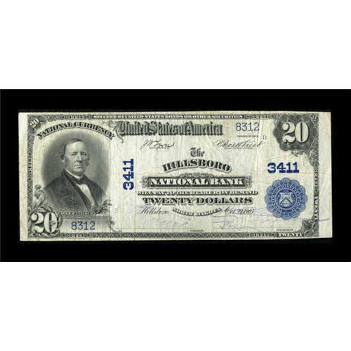 <B>Hillsboro, ND</B></I> - $20 1902 Plain Back Fr. 651 <B>The Hillsboro NB</B></I> Ch. # 3411<BR> It has been almost twenty years since the last public appearance of a note from here. This is one of only nine notes recorded for this issuer. Purple signatures remain visible. <B>Fine-Very Fine</B></I>.<BR><BR><b>Shipping:</b> Coins & Currency (<a target="_blank" href="http://www.heritageauctions.com/common/shipping.php">view shipping information</a>)