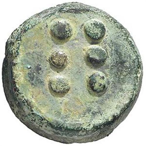 Mondo Greco. Sicilia. Himera. Emilitra, 472-420 a.C. D/ Testa della Gorgone di fronte. R/ Sei globetti. SNG ANS 177. gr. 16.26 R. AE. BB/BB+. Esemplare molto attraente.