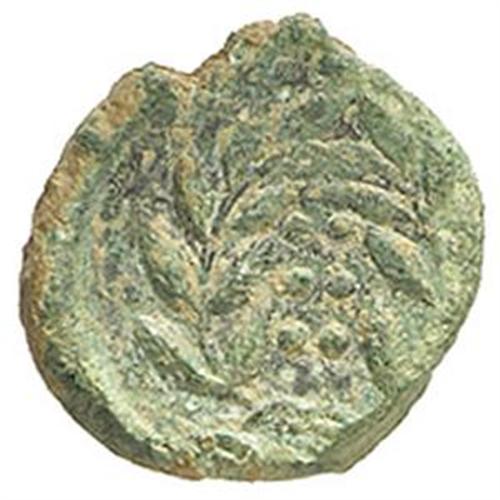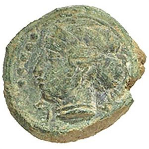 Sicilia. Himera. Emilitra, dopo il 420 a.C. D/ Testa di ninfa a sinistra. Davanti, sei globetti. R/ Sei globetti entro corona d'alloro. Calc. 35/7. gr. 4.32 AE. qSPL. Patina verde.