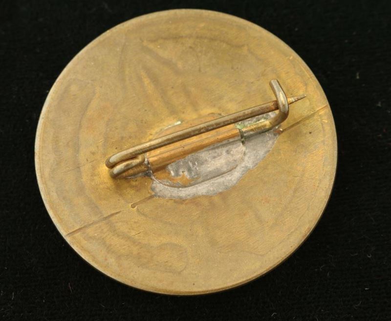 Brass construction 1 3/4" round pin that reads "Hindenburg Landing Crew, Lakehurst" Has a thin vertical pin back. Unmarked