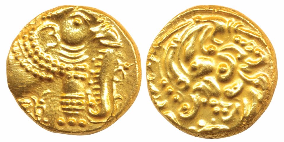 Western Gangas (10th-11th century AD), Gold Gajapati Pagoda, 3.92g, obv. caparisoned elephant to right chewing sugarcane, with a radiating sun symbol above the elephant’s back, a branch under its belly and a branch in front of the trunk, rev. scroll work (Mitch K&A 193). Extremely Fine.