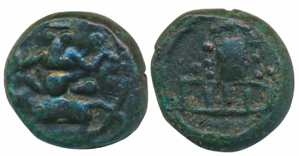 Shivaganga Rajas, Copper Kasu, 3.3g, obv. Ganesha seated facing front on a mouse his vehicle, rev. garlanded lingam on an altar (Mitch T&K 1078). Very Fine+, Rare.