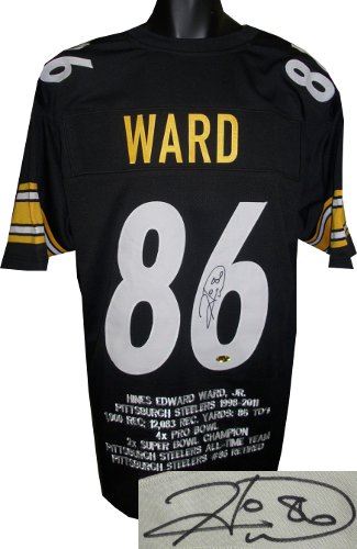 Hines Ward played for the Pittsburgh Steelers for 14 seasons after being drafted in the third round of the 1998 NFL Draft, becoming the team's all-time leader in receptions, receiving yardage and touchdown receptions. Ward was voted MVP of Super Bowl XL, and upon retirement was one of only eight NFL players to have 1,000 or more career receptions. He played college football at the University of Georgia. Hines Ward has hand signed this Pittsburgh Steelers Black Prostyle Jersey with Embroidered Stats. JSA Hologram and Certificate of Authenticity.